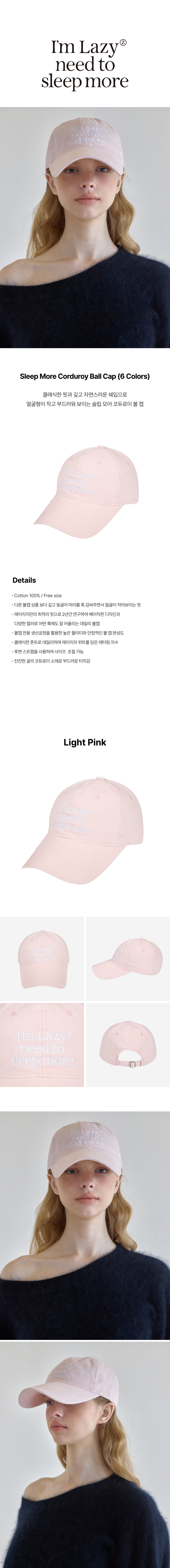 레이지지 슬립모어 코듀로이 볼캡 라이트핑크