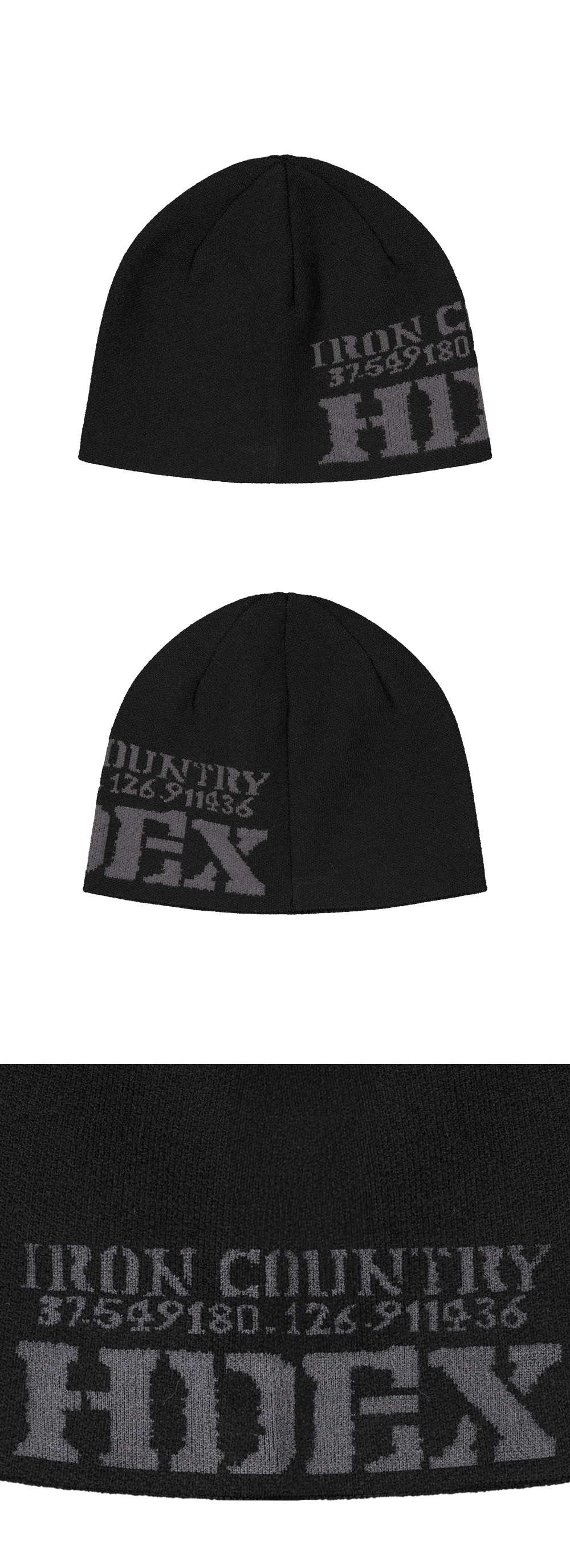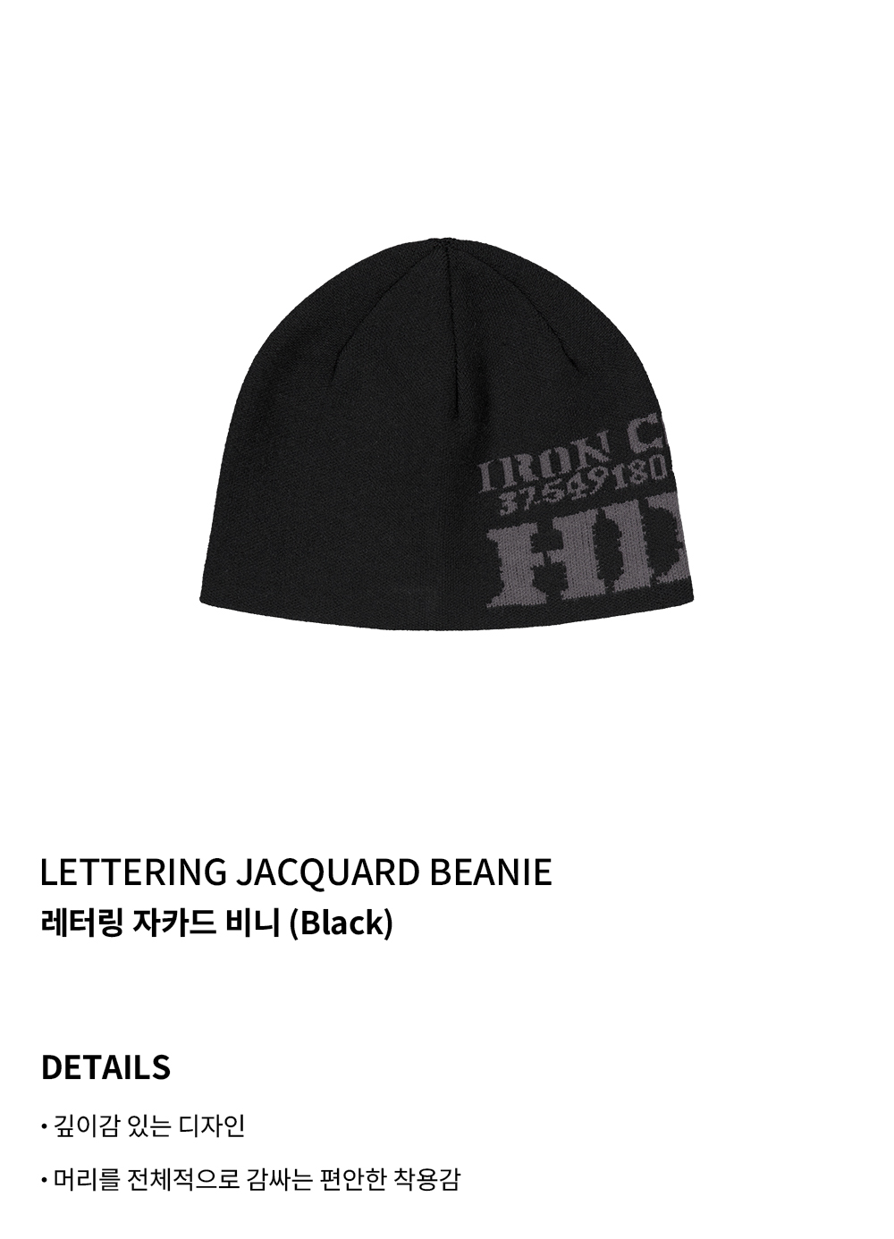 에이치덱스 레터링 자카드 비니 블랙