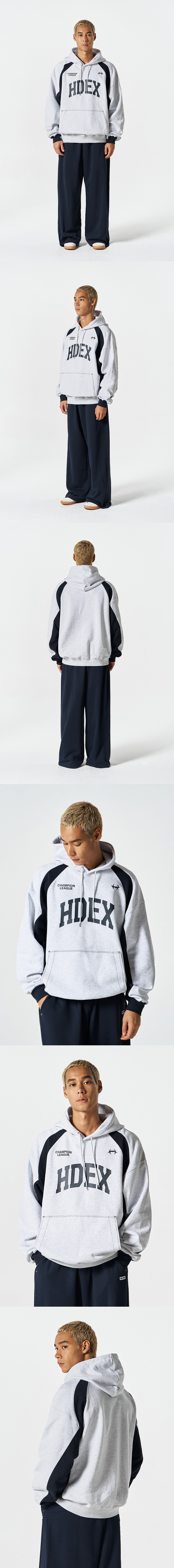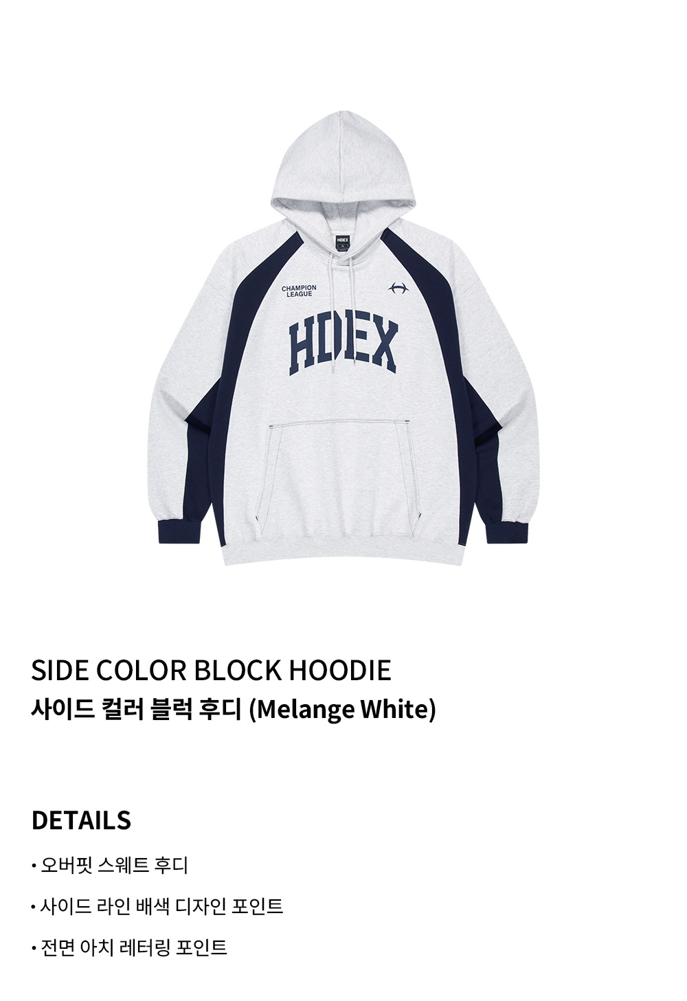 에이치덱스 사이드 컬러 블럭 후디 멜란지 화이트