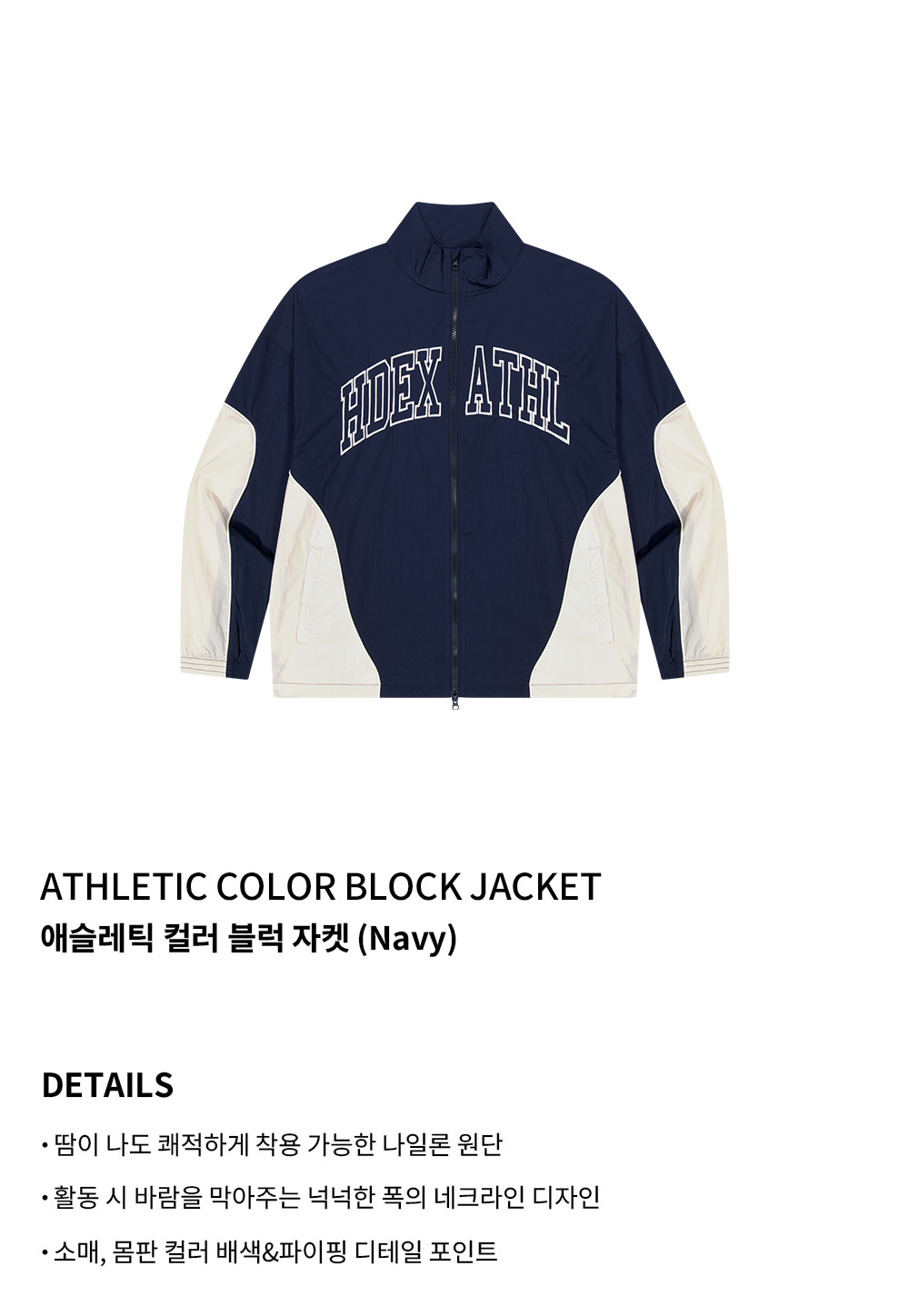 에이치덱스 애슬레틱 컬러 블럭 자켓 네이비