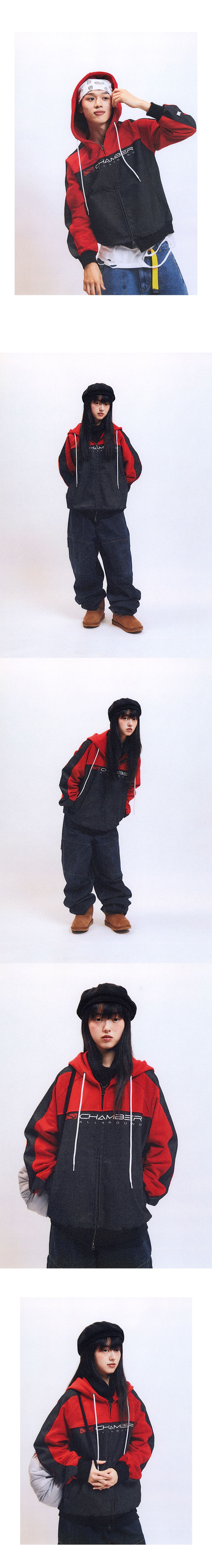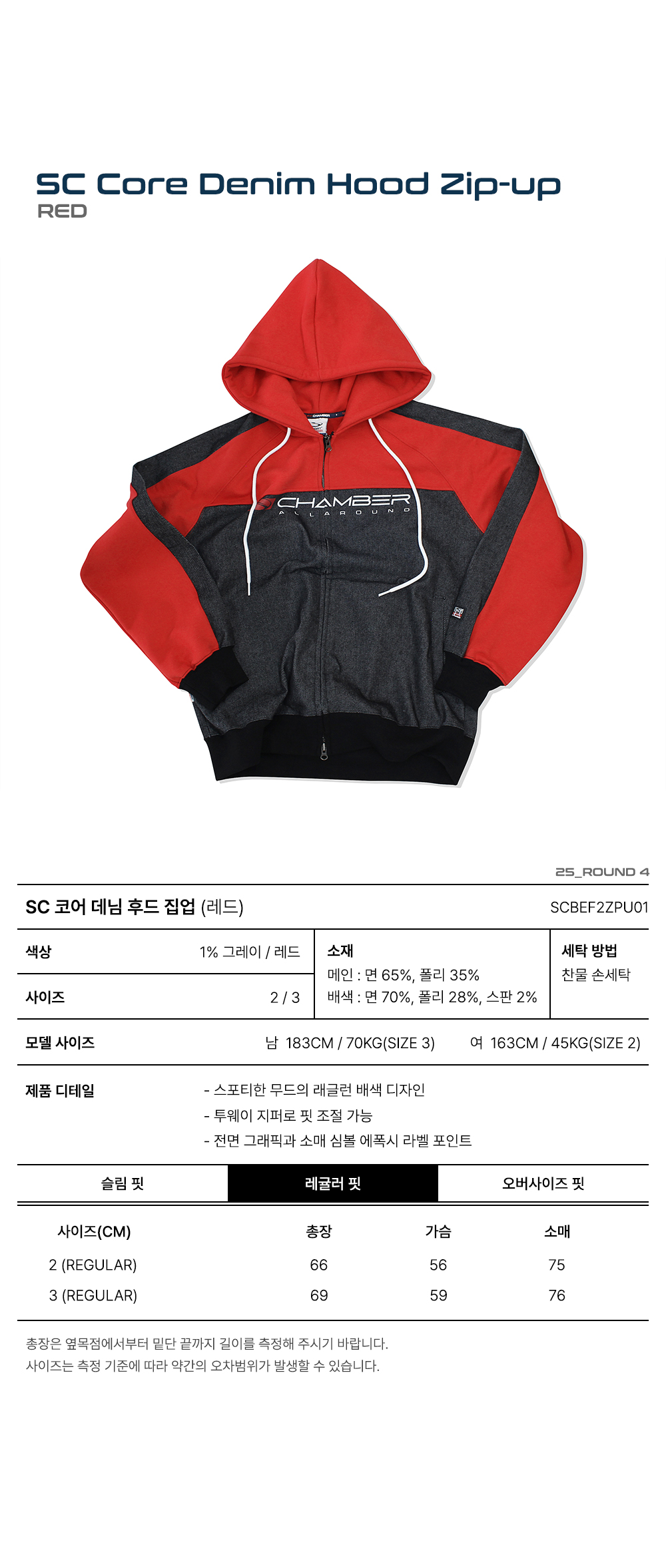 스포츠챔버 SC 코어 데님 후드 집업 레드
