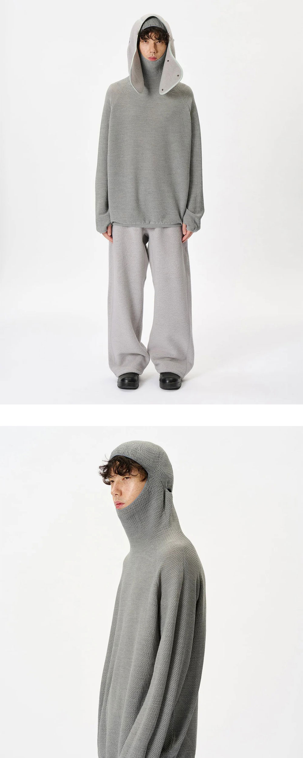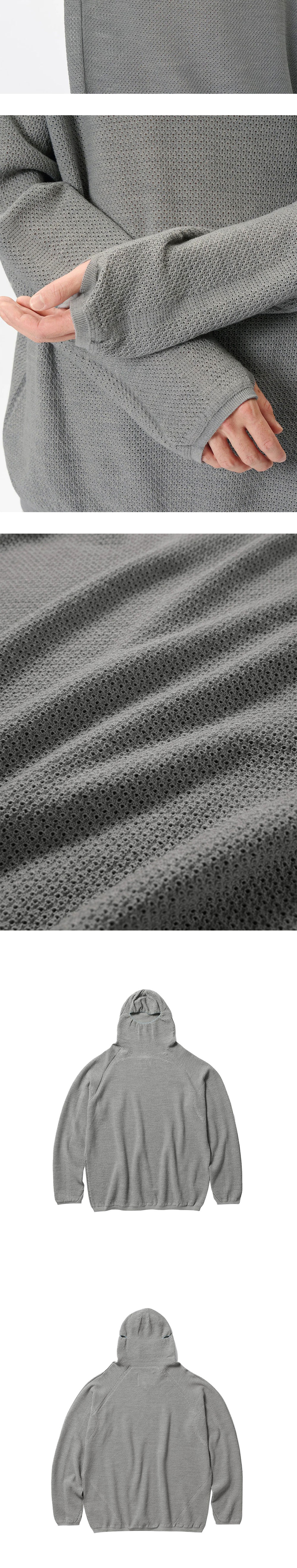 골드윈 퍼포레이티드 홀가먼트 니트 탑 징크 그레이입니다. - 바라클라바 스타일의 니트후드 - 레귤러 핏 실루엣 - 세밀한 펀칭 구조 - 소매 워머홀 - 무봉제 Wholegarment® 테크놀로지로 편안한 착용감 - 울과 폴리에스터 혼방 원사로 따뜻하면서도 내구성이 뛰어남