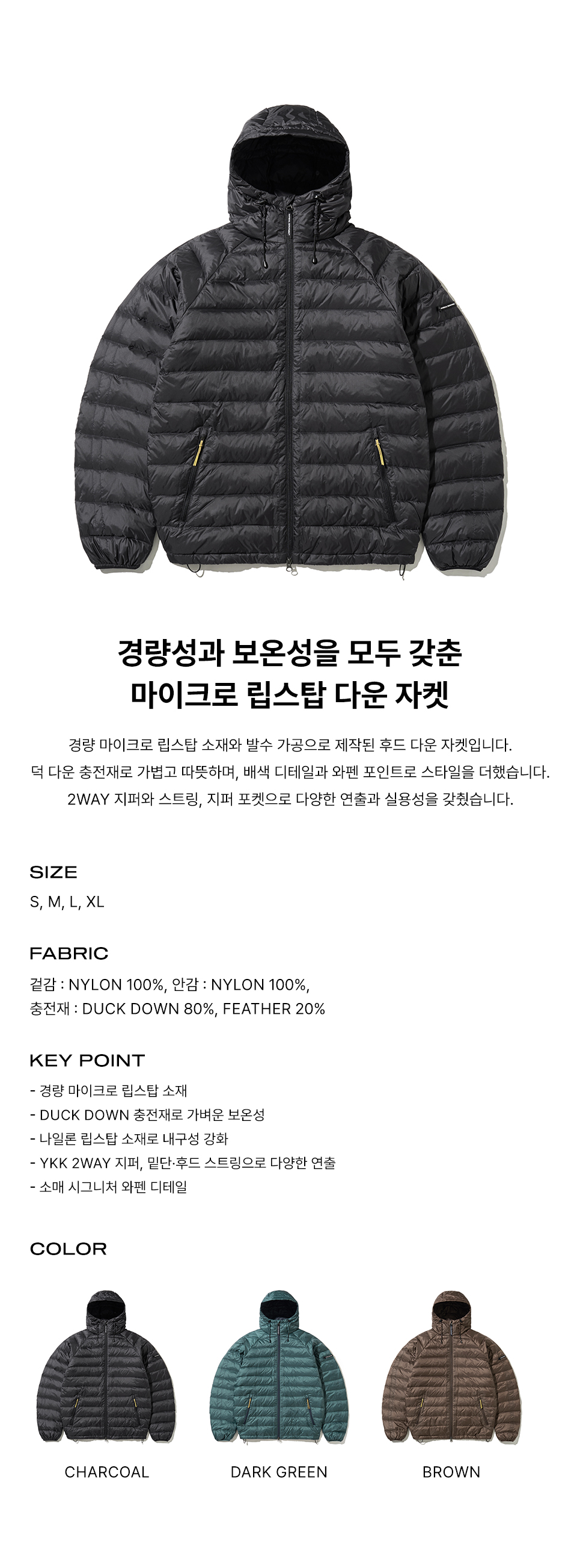 피지컬 디파트먼트 하이크 라이트 웨이트 다운 자켓 차콜
