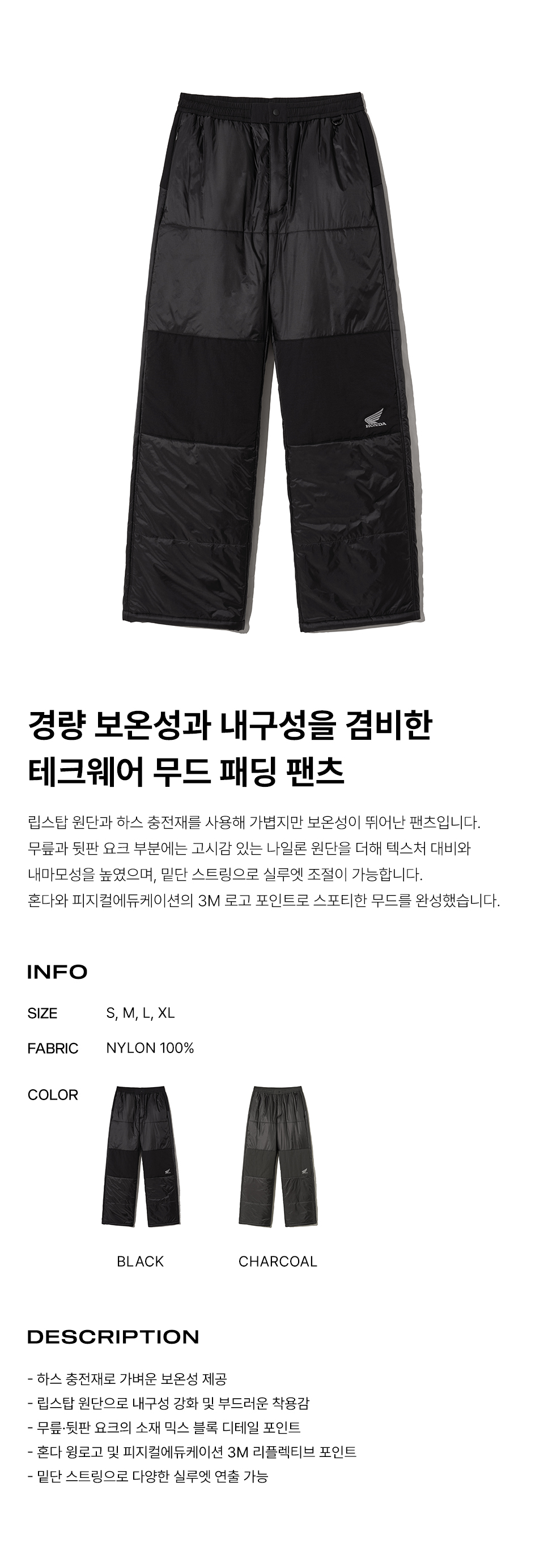 혼다 H-Tech 패커블 패딩 팬츠 블랙
