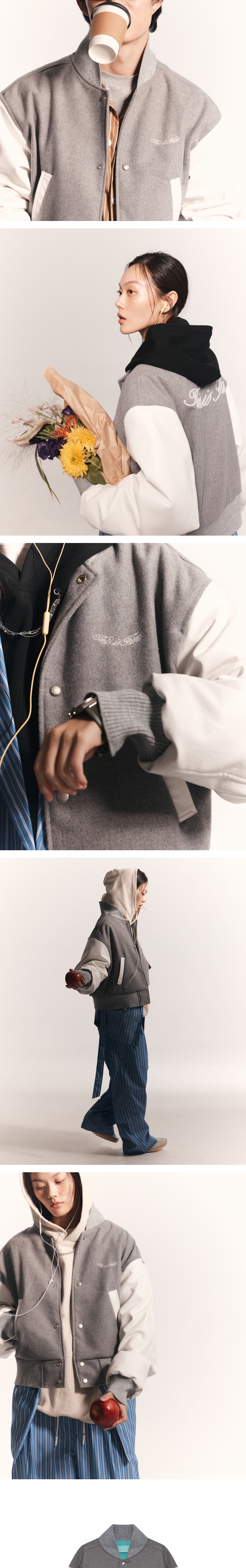THIS IS FINE x FUNFLEX Short Varsity Jacket Gray
