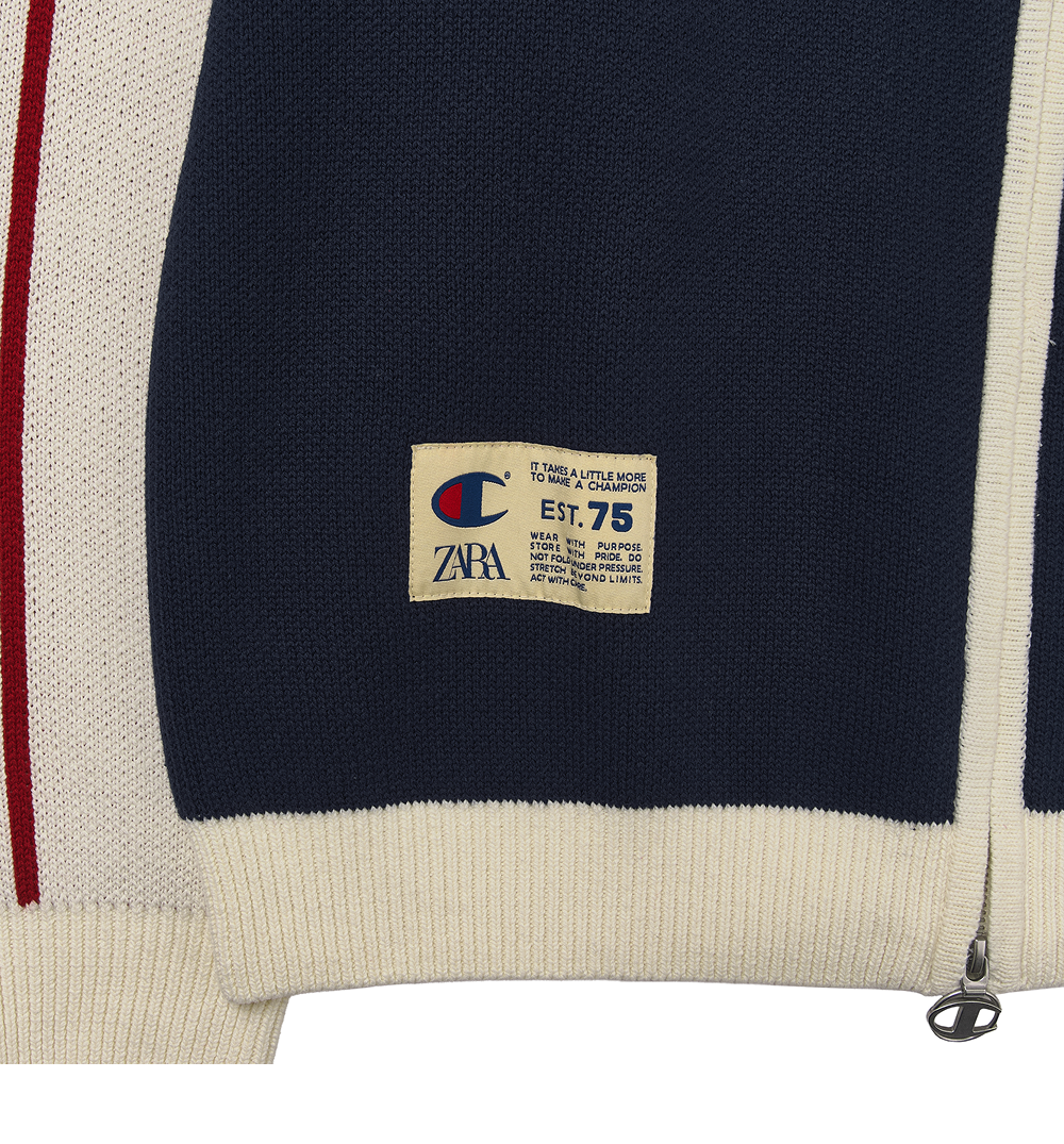 Zara x Champion Color Block Stripe Cardigan Navy Blue