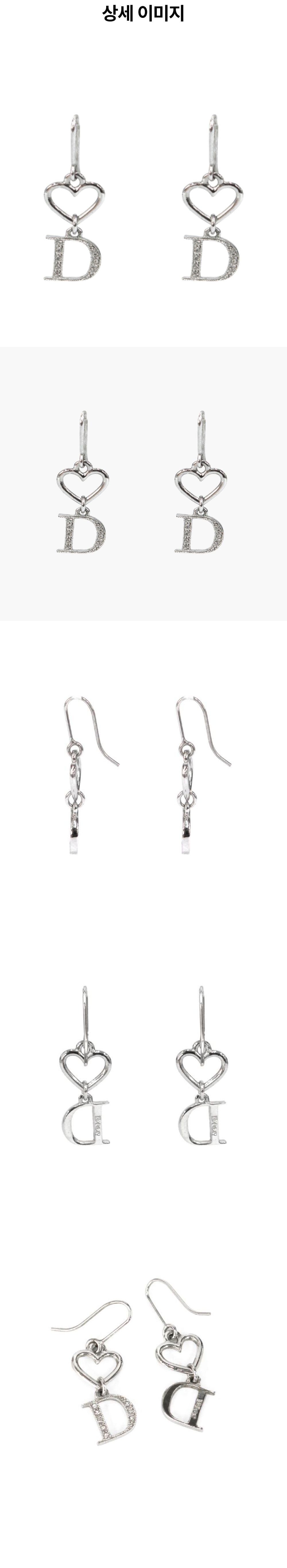 디올 하트 큐빅 D 실버 귀걸이 A-B30807