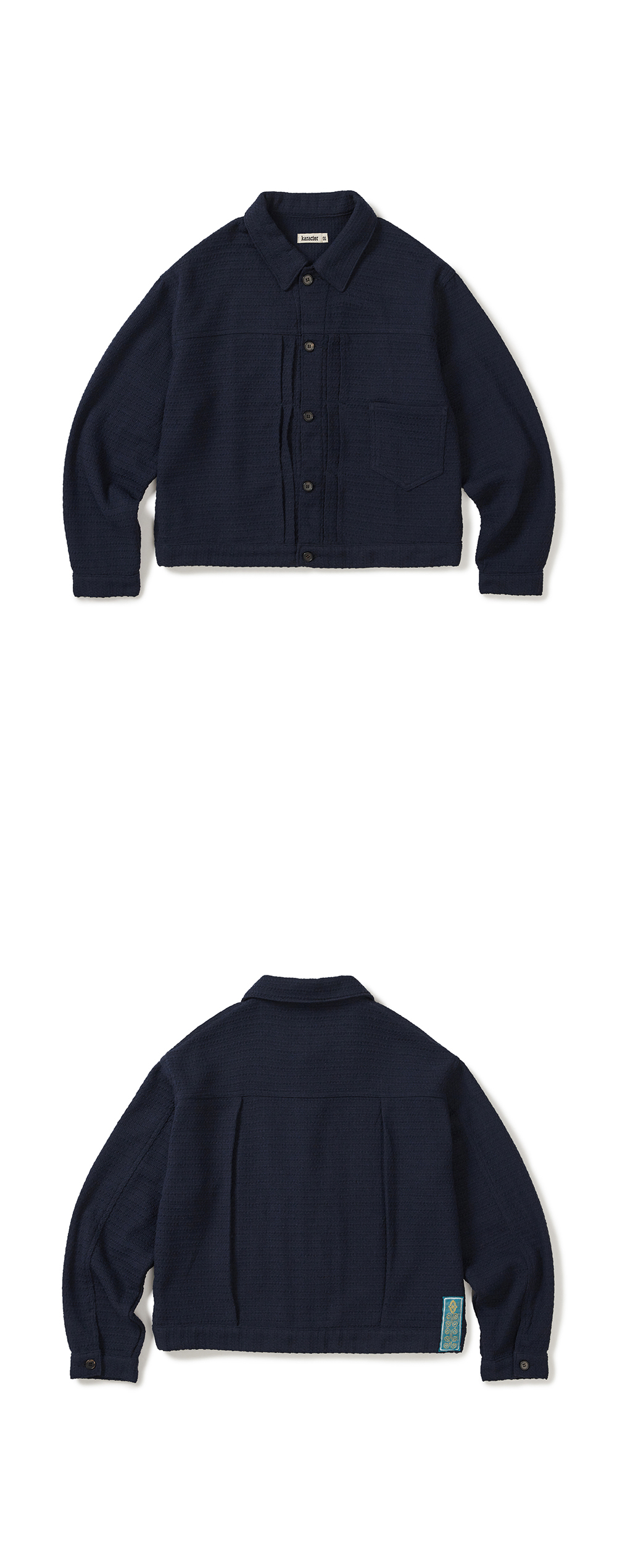 Product Info. - 짜임이 매력적인 고품질 울 혼방 소재로 제작된 트러커 자켓 - 소매 부분 라이닝 구조로 착용감이 편안하면서도 자연스럽게 연출되는 실루엣 - 여유롭고 넉넉한 와이드 핏 실루엣과 경쾌한 기장감 - 클래식한 전면 더블 플리츠 및 포켓 디테일 - 후면 더블 액션 플리츠 디테일 - 후면 하단부 린넨 소재의 자수 라벨 포인트 - Real Cow Horn Button 사용 *MODEL 173cm, wearing size 01