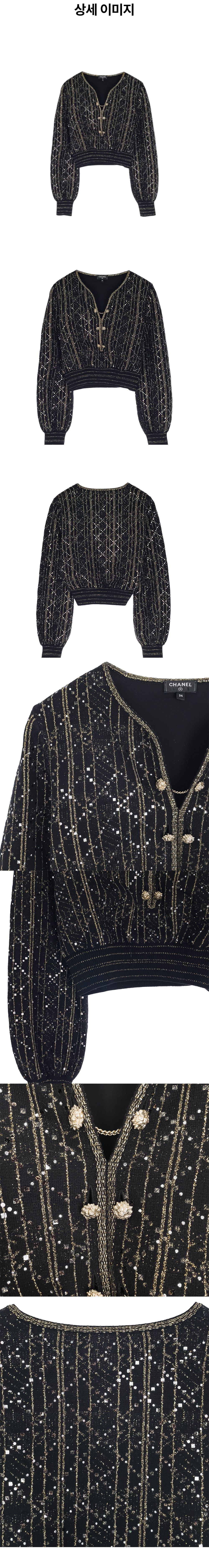 샤넬 20A 공방컬렉션 시퀸 메탈 스웨터 34 블랙/골드 (5ET1601)