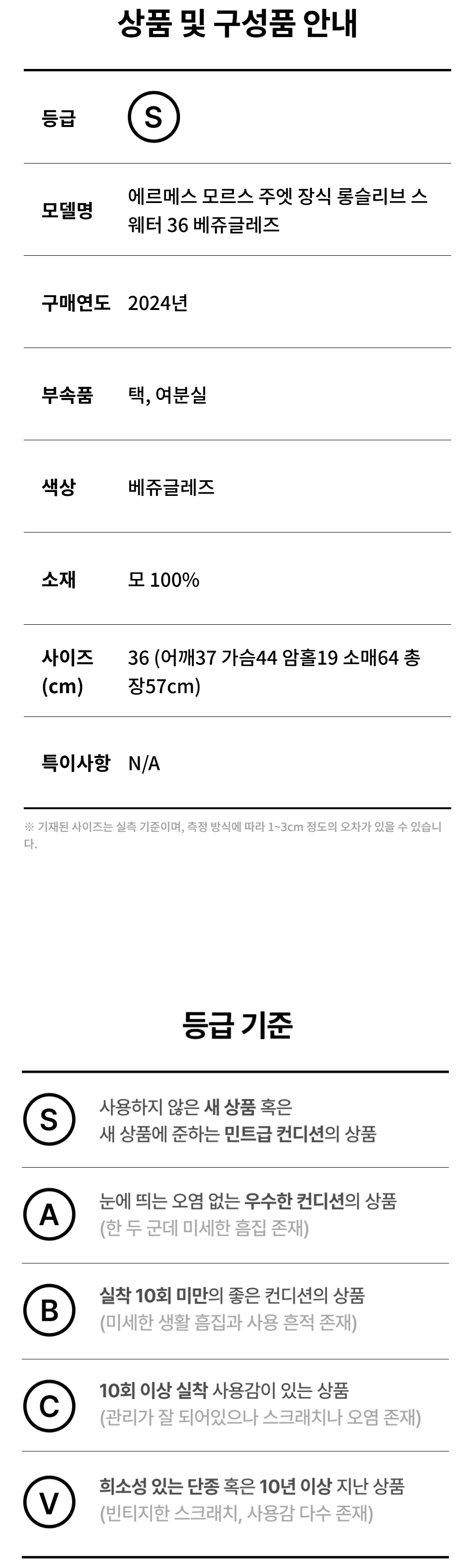 에르메스 24FW 모르스 주엣 장식 롱슬리브 스웨터 36 베쥬글레즈(4HA0950)