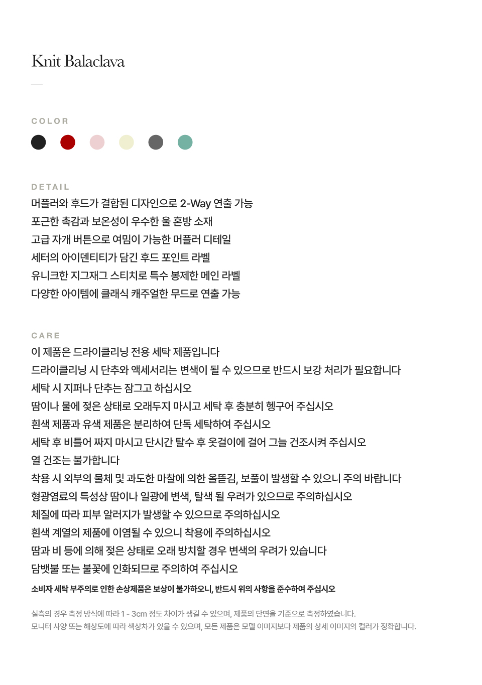 측정 방법에 따라 사이즈에 일부 오차가 있을 수 있습니다.