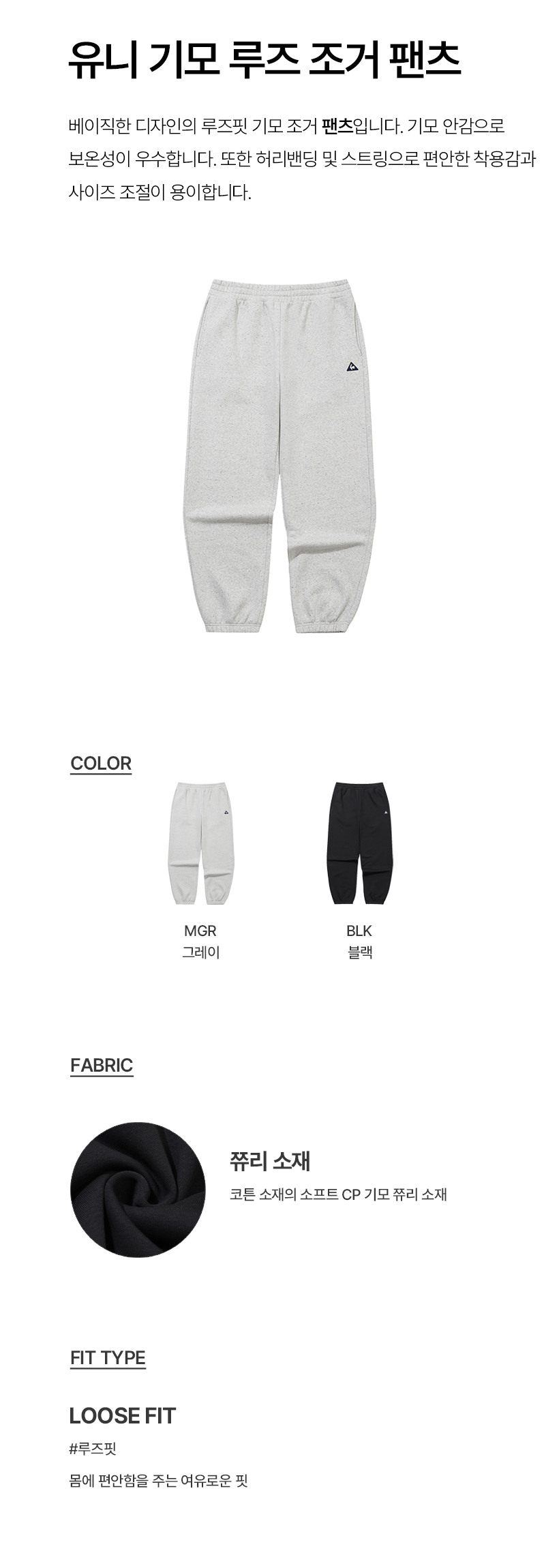 르꼬끄 스포르티브 유니 기모 루즈 조거 팬츠 - 블랙 QQ423LFPO2