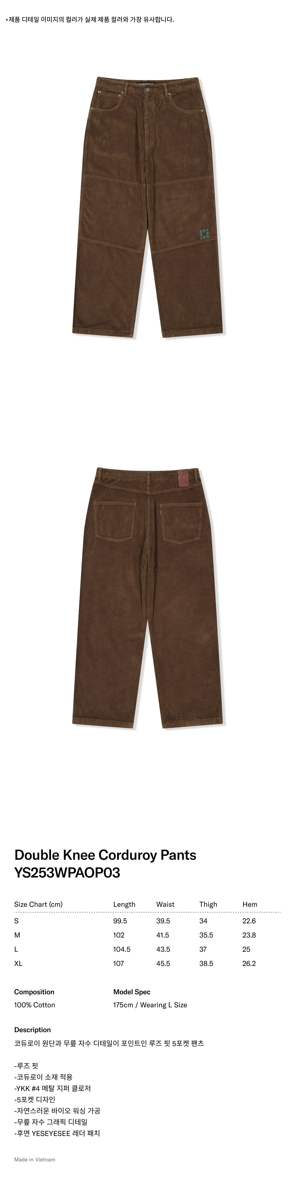 예스아이씨 더블니 코듀로이 팬츠 다크 브라운