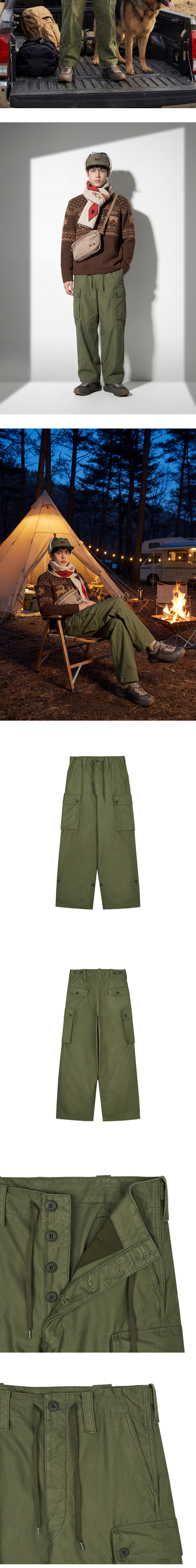 오어슬로우 와이드 핏 카고 팬츠 아미 그린 - 25FW