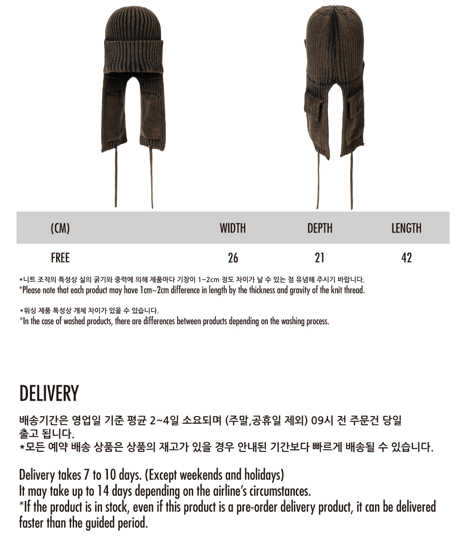 AJOBYAJO Washed Knit Trooper Hat Brown