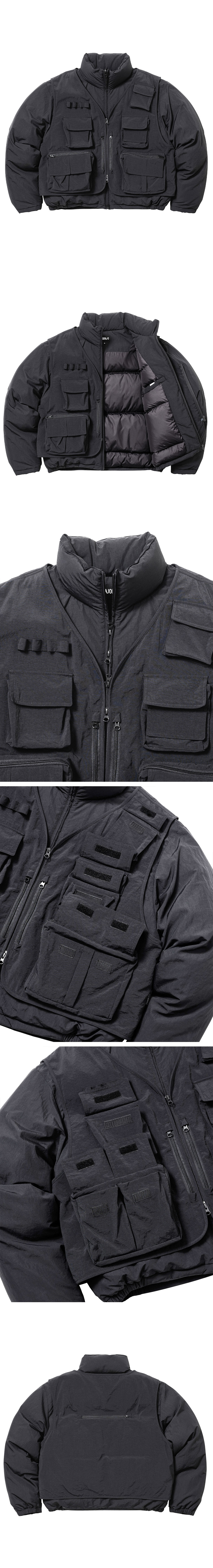 아조바이아조 카고 베스트 레이어드 패디드 자켓 블랙