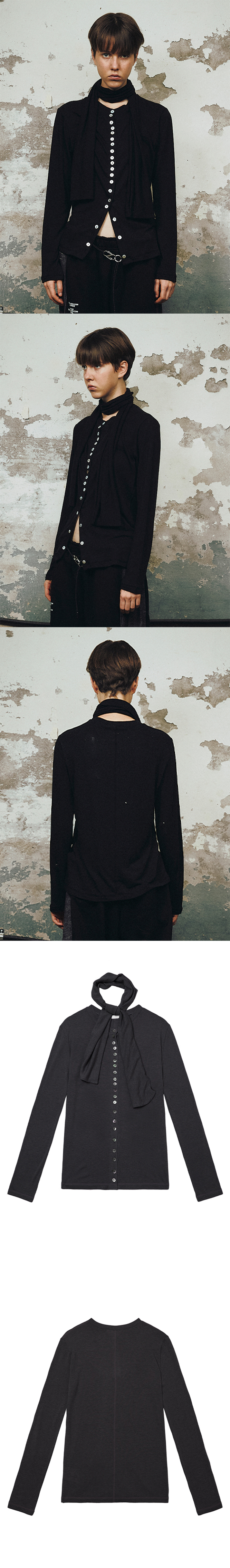 DETAIL - Soft wool tencel fabric - Mother-of-pearl hardware - Button closure - Slim fit - Self-tie scarf included COMPOSITION Tencel 81% Wool 15% Span 4% SIZE MEASUREMENT - Size OS : Length 55cm_ Chest 46cm_ Shoulder 40cm_ Sleeve 62cm Made in S o u t h Korea WASHING INSTRUCTIONS Dry clean recommended Hand wash cold Wash separately Do not bleach
