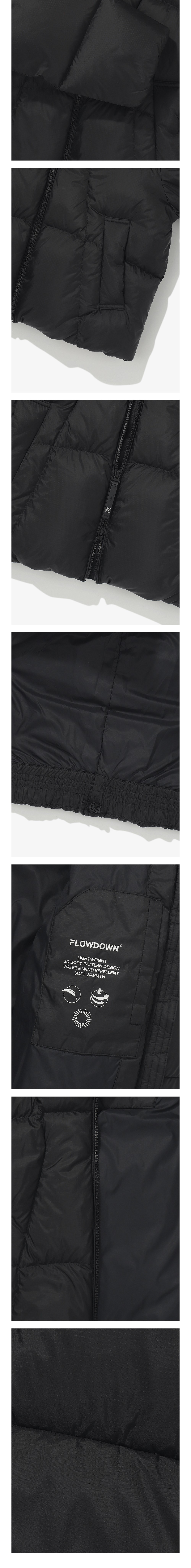 이번 시즌 주력 다운인 플로우 다운 입니다.은은한 광이 나는 소재를 사용하여 부담스럽지 않게 포인트를 주었습니다. 몸의 움직임을 고려한 입체 패턴 설계로 최적의 핏을 구현하여 다양한 야외 활동시 불편함이 없어 오래 입어도 불편함이 없습니다.지난 시즌 상품에서 기장을 2cm 더 길게 적용하여 착용시 더욱 편한 세미크롭 핏으로 연출 됩니다.BRN 컬러는 다른 컬러와 다른 소재로 더욱 글로시한 느낌입니다.
