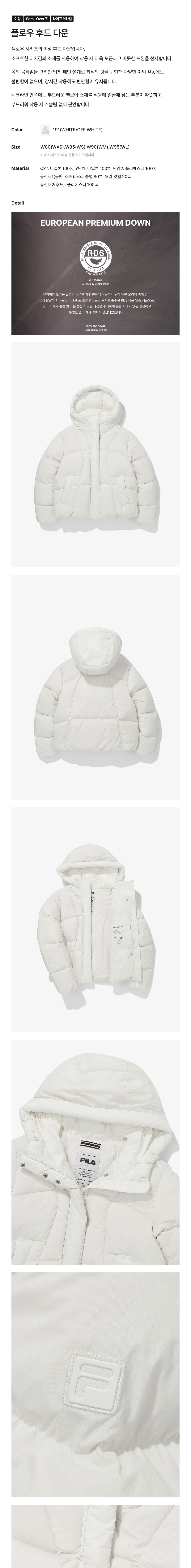 [6% 적립] 휠라 여성 플로우 후드 다운 화이트