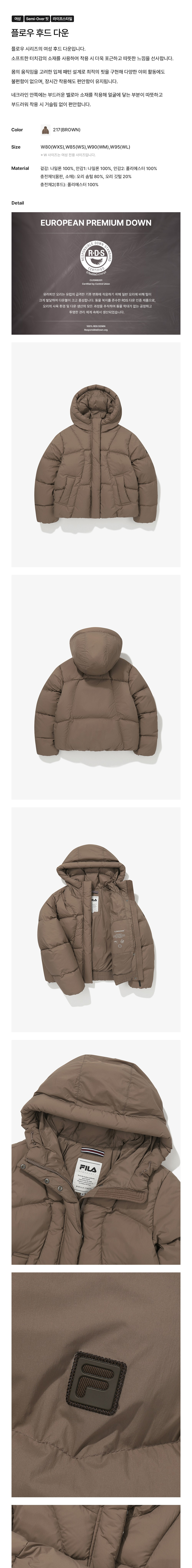 [6% 적립] 휠라 여성 플로우 후드 다운 코코아