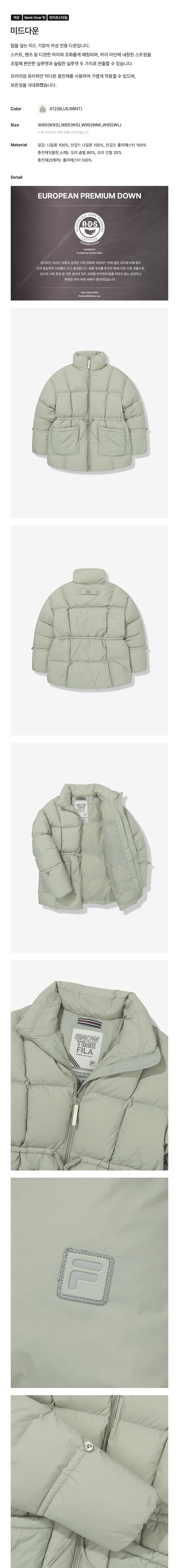 힙을 덮는 미드 기장의 여성전용 다운입니다.스커트, 팬츠 등 다양한 하의와 조화롭게 매칭되며허리라인에 스트링이 내장되어 있어편안한 실루엣과 슬림한 실루엣 두가지 방법으로 연출 가능합니다.프리미엄 유러피안 덕다운 충전재를 사용하여 착용시 가볍고 보온성 극대화 하였습니다.