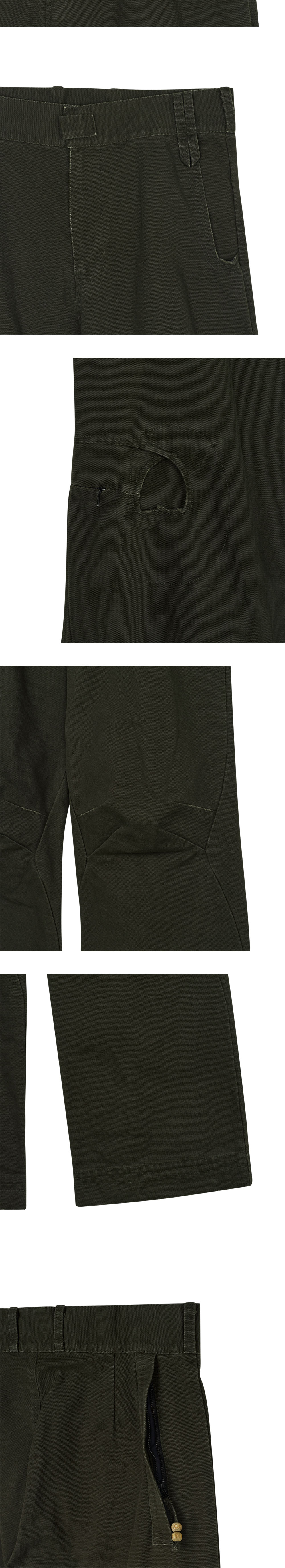 지안 예 타오 팬츠 다크 올리브입니다. - 독특한 패널링 디자인 - 오른쪽 허벅지 지퍼 포켓 - 워크, 밀리터리 무드