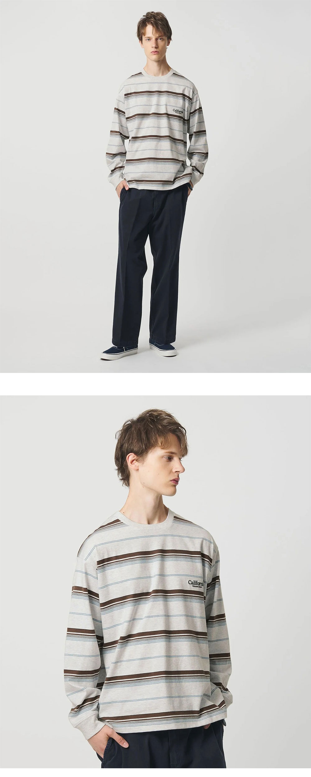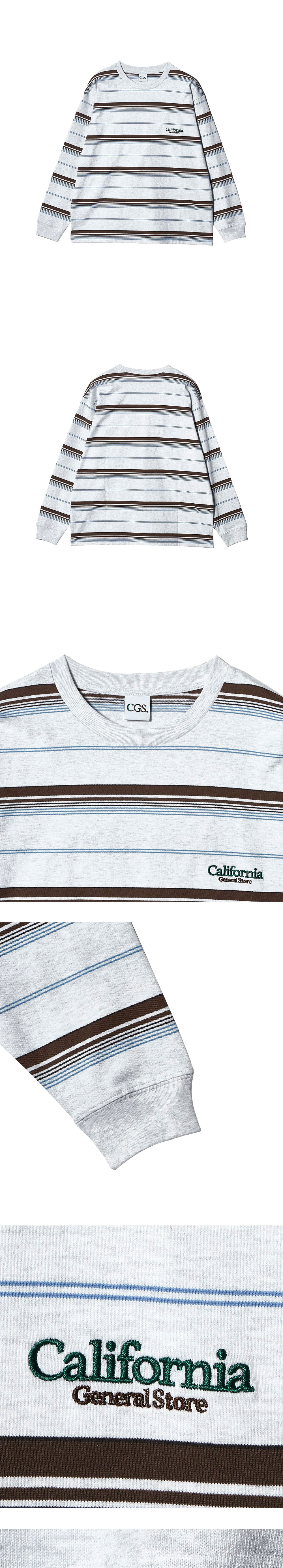 캘리포니아 제너럴 스토어 오가닉 코튼 보더 크루 넥 롱 슬리브 라이트 그레이 - 25FW
