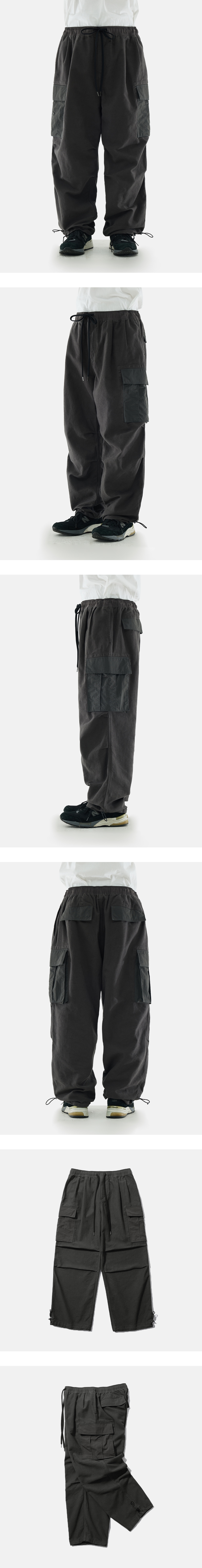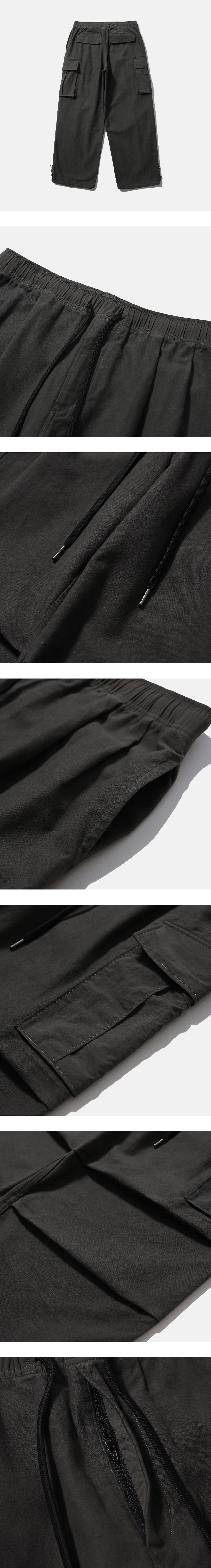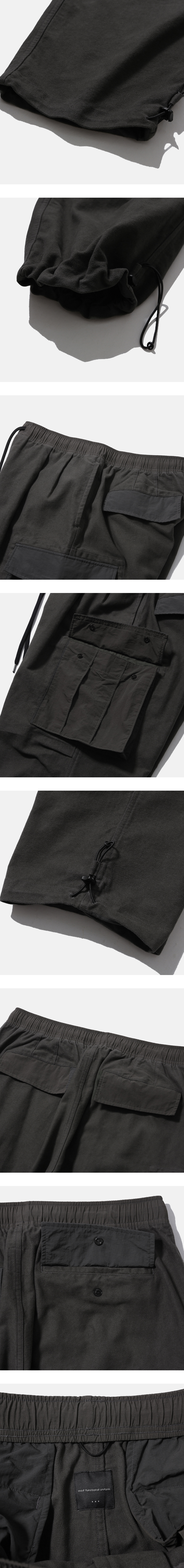 넉넉한 수납공간을 갖춘 밀리터리 팬츠 · 여유롭고 편안한 느낌의 실루엣. · 묵직한 중량의 기모가 있는 면 원단 사용. · 넉넉한 사이즈의 카고 포켓을 포함한 6개의 포켓으로 구성. · 허리와 무릎에 턱을 넣어 편안한 착용감과 풍성한 실루엣 연출. · 허리 스트링과 지퍼 플라이 사양. · 실루엣 조절이 가능한 밑단 스트링으로 2가지 타입으로 연출 가능.