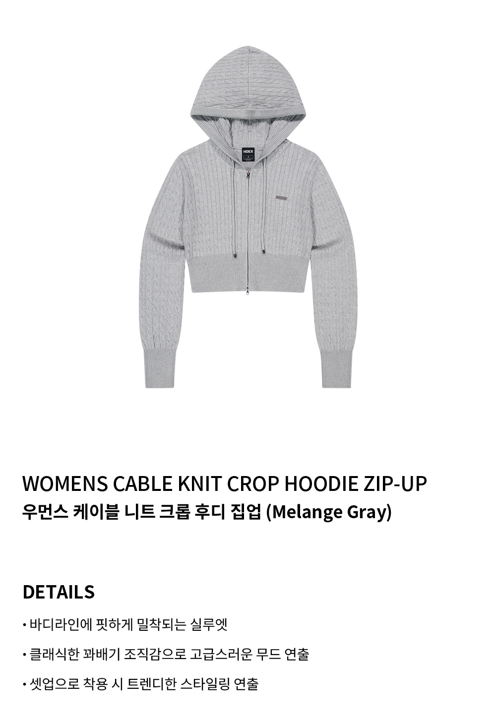 에이치덱스 우먼스 케이블 니트 크롭 후디 집업 멜란지 그레이