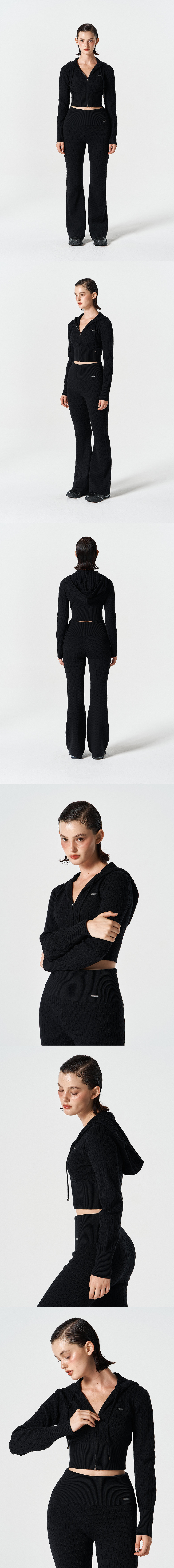 에이치덱스 우먼스 케이블 니트 크롭 후디 집업 블랙