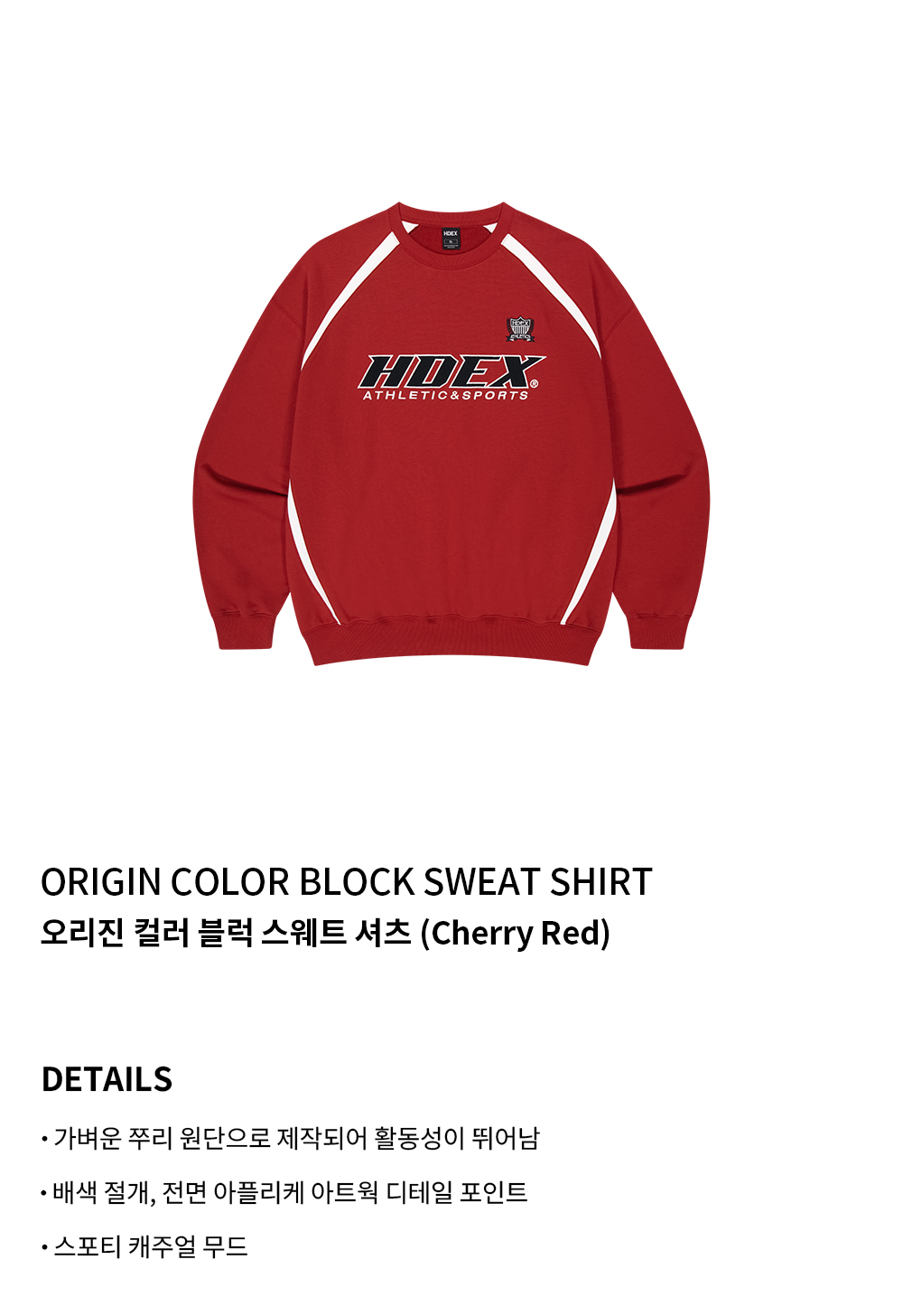 에이치덱스 오리진 컬러 블럭 스웨트 셔츠 체리 레드