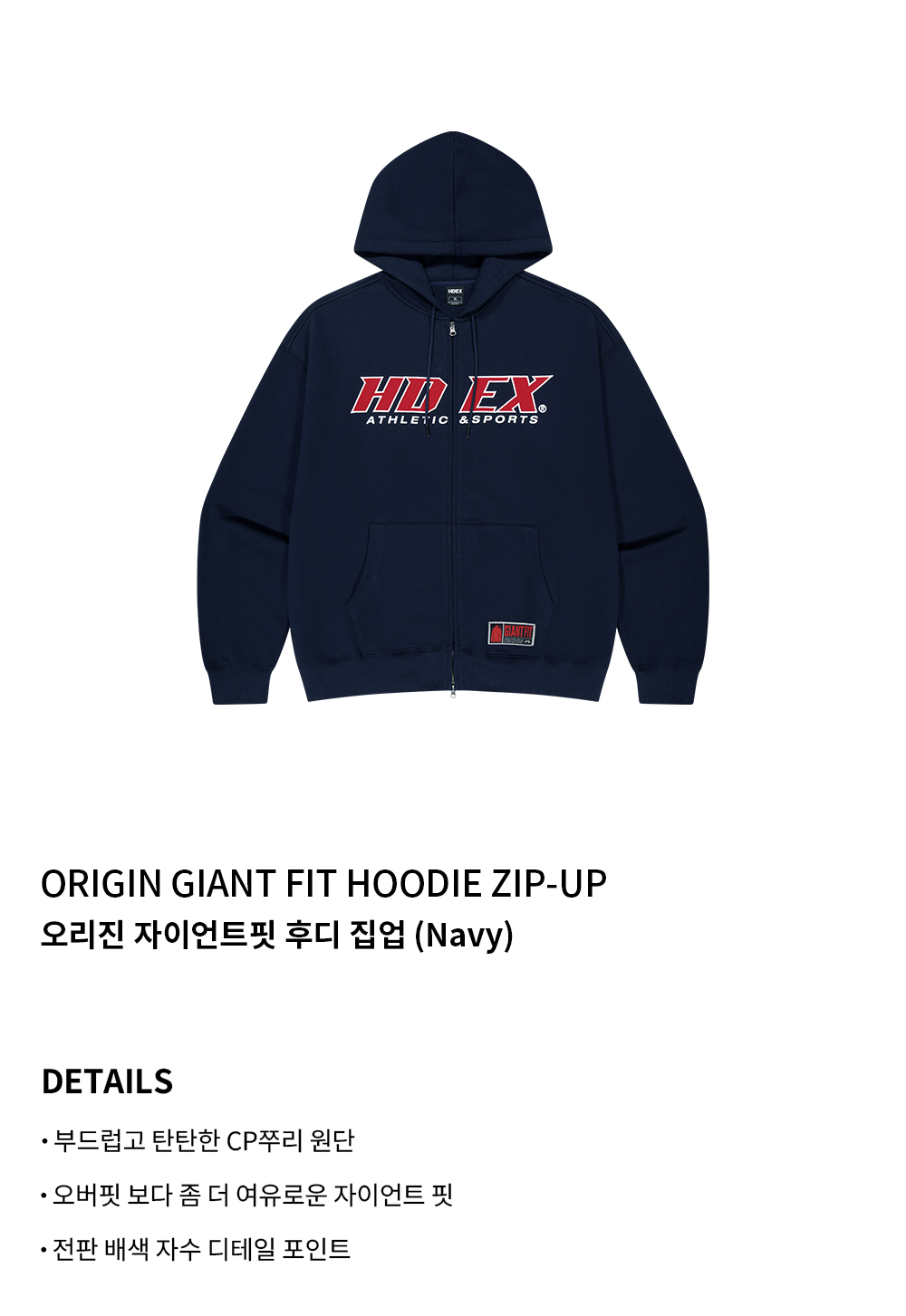 에이치덱스 오리진 자이언트핏 후디 집업 네이비