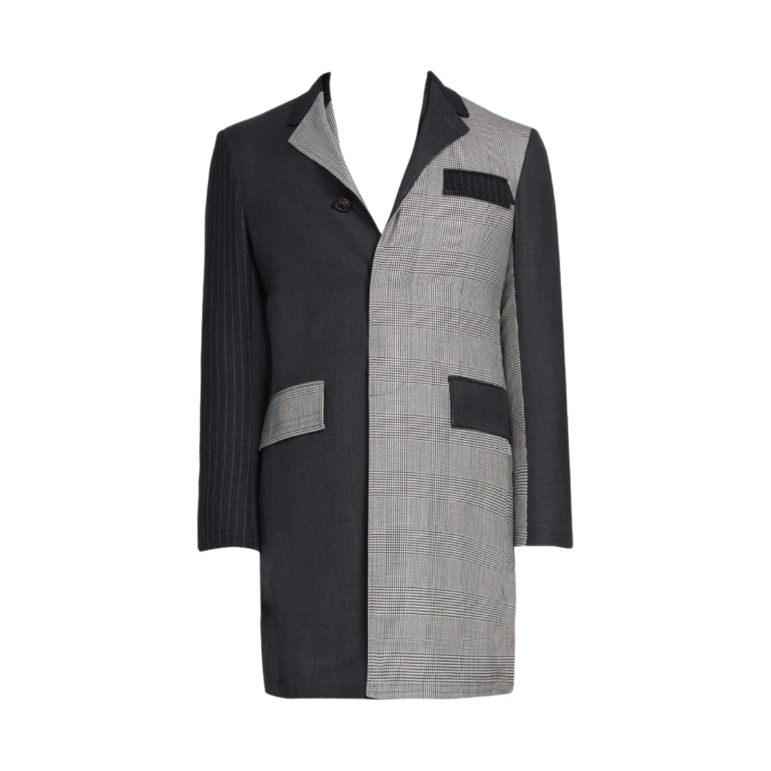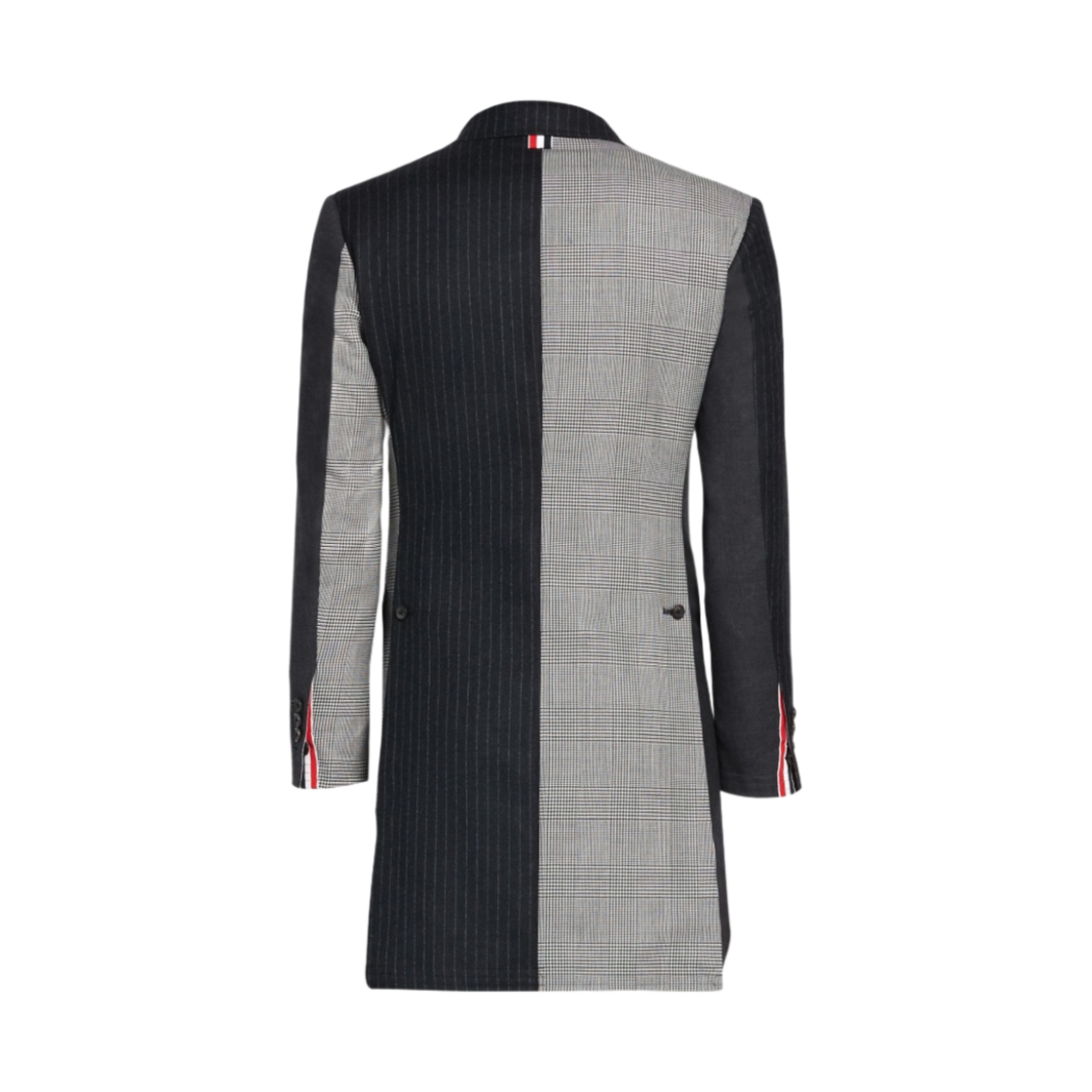 Thom Browne Funmix Wool Prince of Wales Chesterfield Overcoat Black White