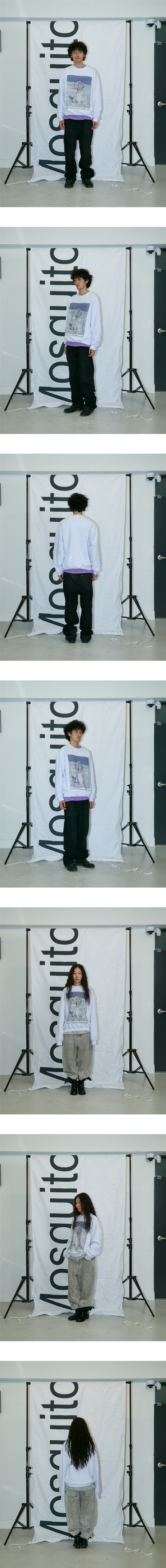 185cm(6’1”) / 62kg(137lb) WEARS SIZE 2 163cm(5’3”) / 46kg(101lb) WEARS SIZE 1 - Cotton 50% Polyester 50% 도톰하고 소프트한 텍스처 - 목 늘어남을 방지하기 위한 넥라인 해리처리 - 갈라삼봉 봉제법으로 내구성이 우수하며 완성도 높은 실루엣 - 넓고 두꺼운 밴딩을 이용한 소매 및 끝단 시보리 처리 - 덤블워싱, 텐타 가공을 거쳐 오랜시간 착용 및 세탁시에도 옷의 변형을 최소화 - 벗겨지거나 바래지 않는 선명한 프린팅