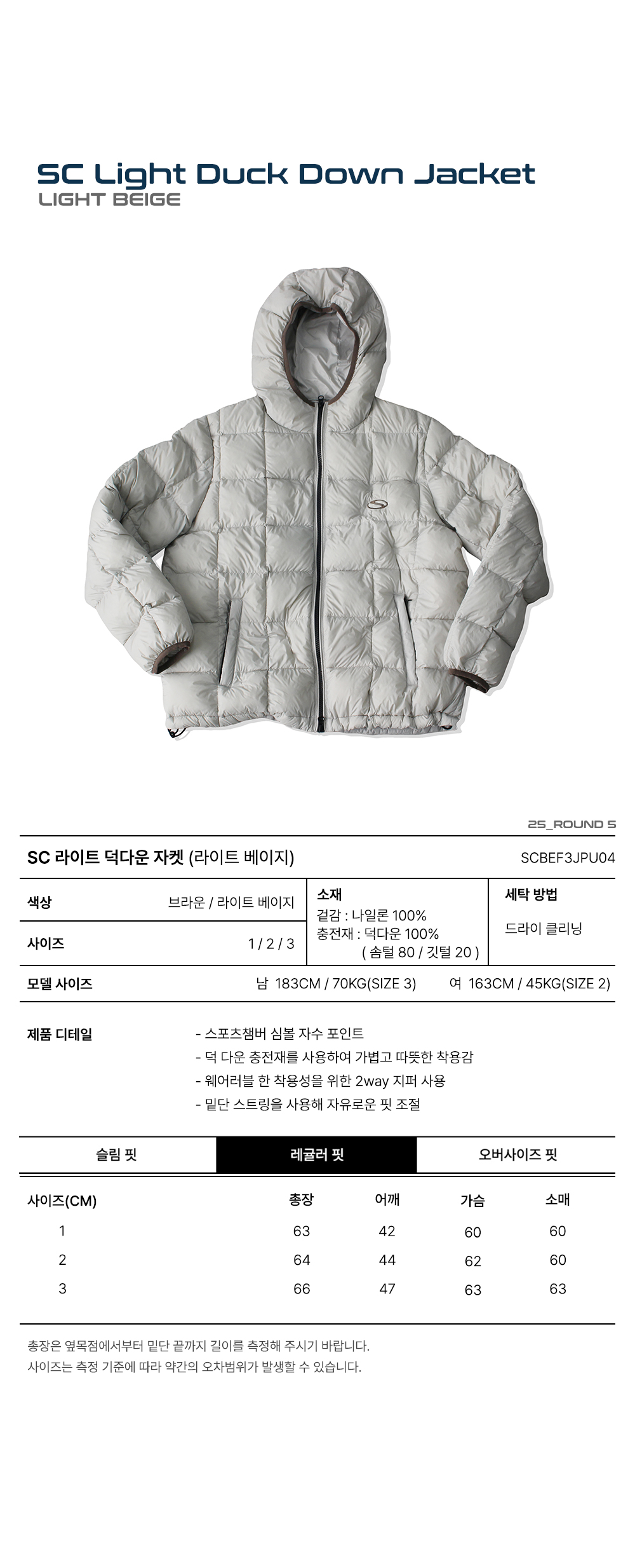 스포츠챔버 라이트 덕 다운 자켓 라이트 베이지
