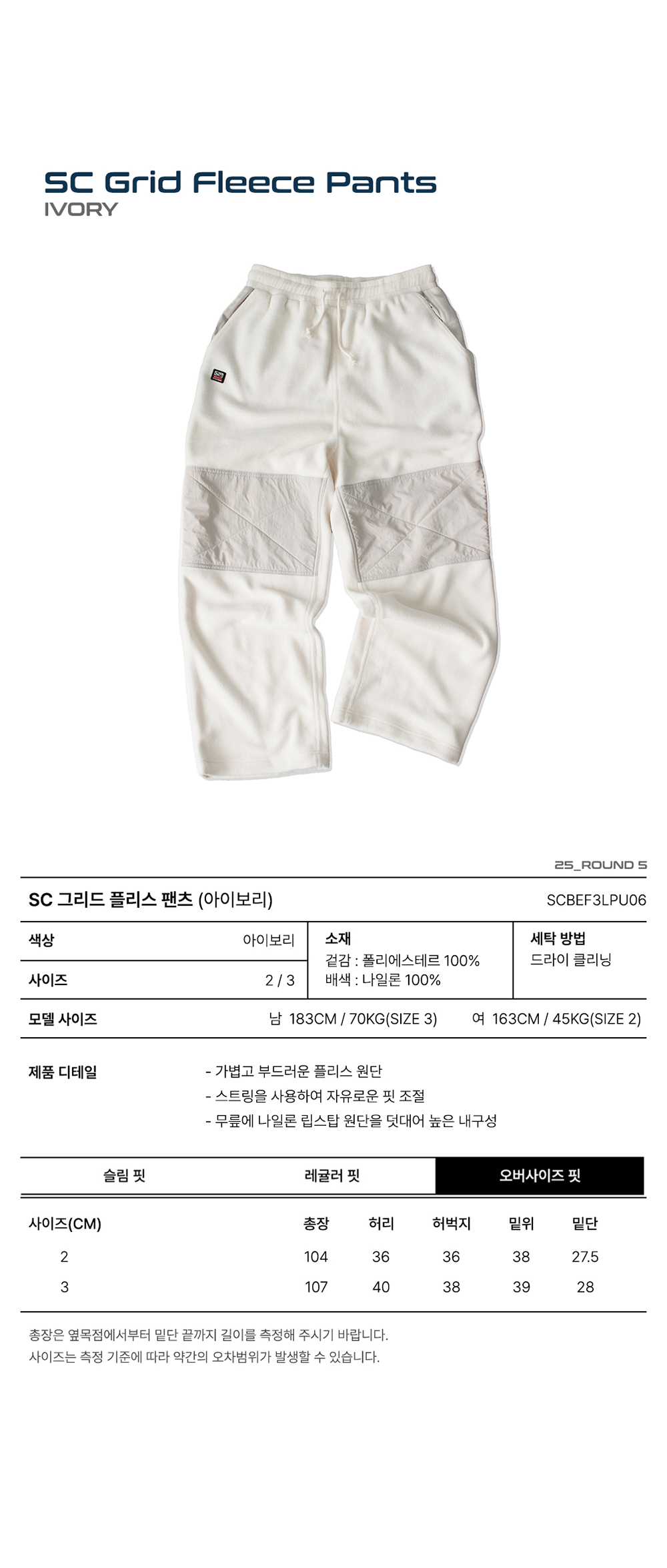 스포츠챔버 그리드 플리스 팬츠 아이보리