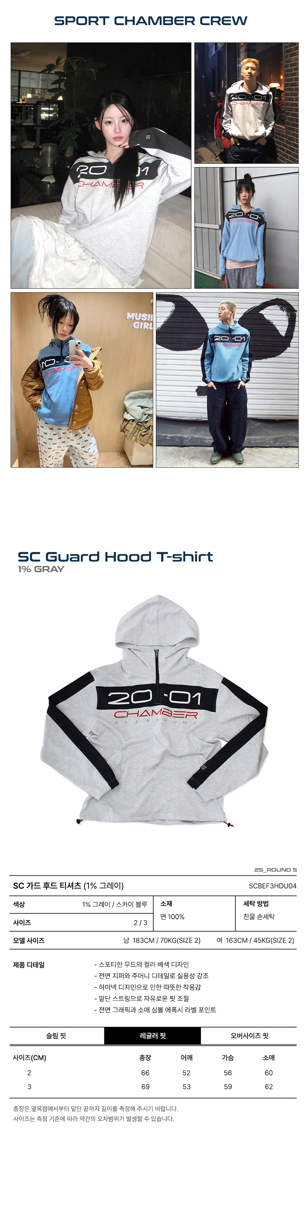 스포츠챔버 가드 후드 티셔츠 1% 그레이