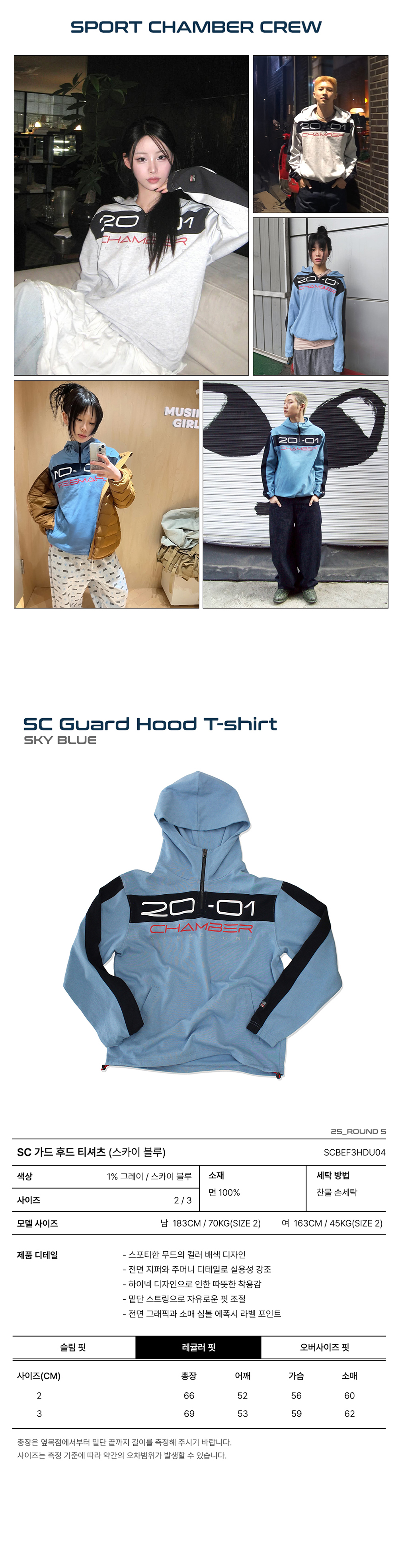 스포츠챔버 가드 후드 티셔츠 스카이 블루