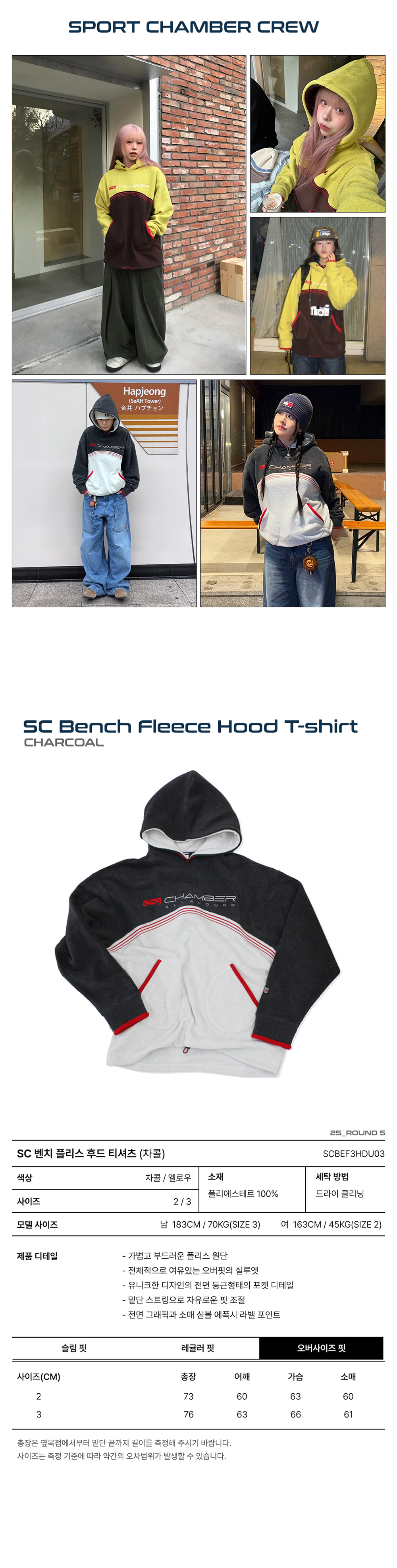 스포츠챔버 벤치 플리스 후드 티셔츠 차콜