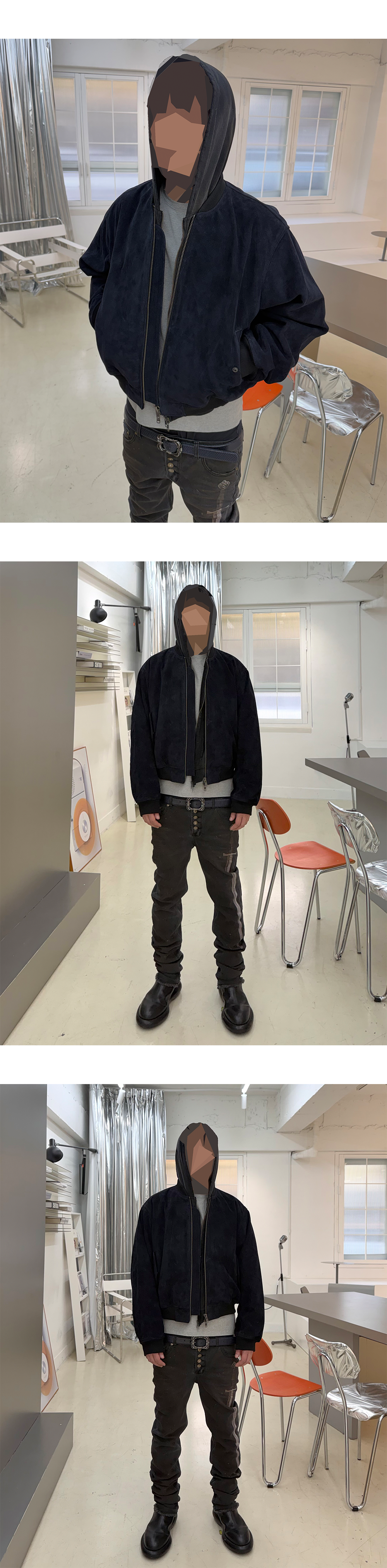 언더마이카 25SS 잔 다르크 소드 오브 알터 엠브로이더드 스웨이드 블루종 네이비