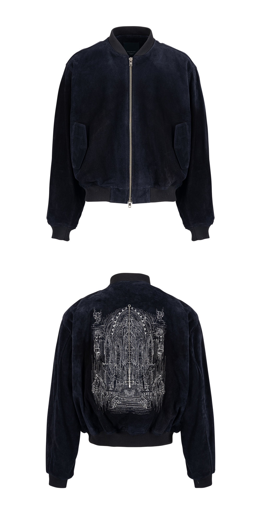 Undermycar 25SS Jeanne D'Arc Sword of Altar Embroidered Suede Blouson Navy