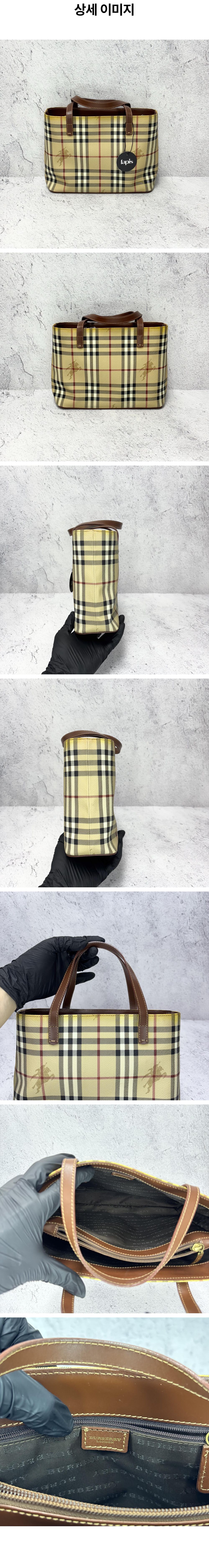 버버리 노바 체크 핸드백 PVC 베이지 브라운 골드