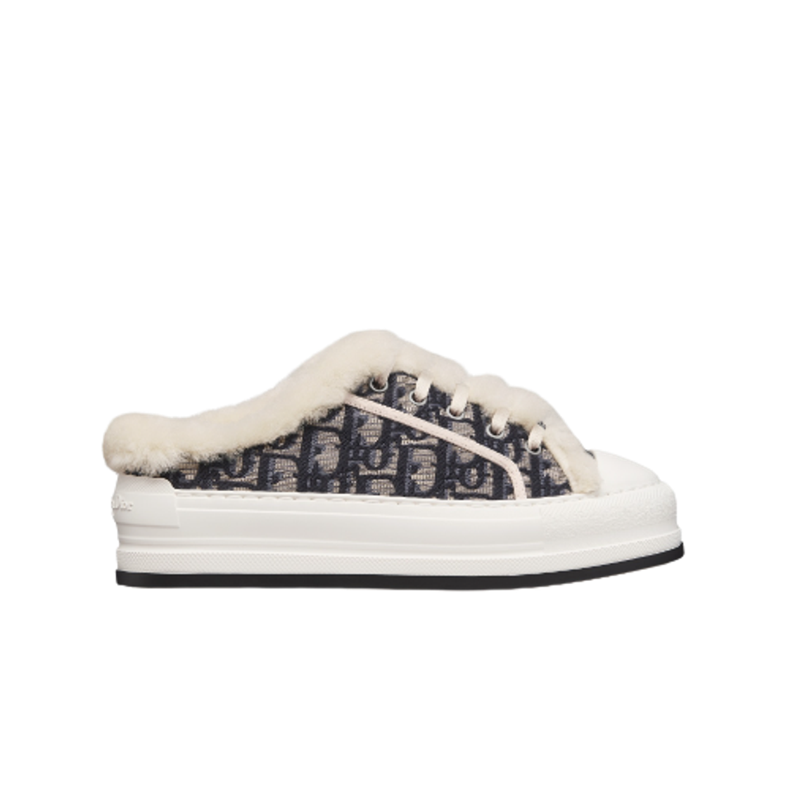 (W) 디올 디올알프스 워크 앤 디올 플랫폼 스니커즈 디올 오블리크 자수 코튼 앤 램스킨 셔링 딥 블루 화이트