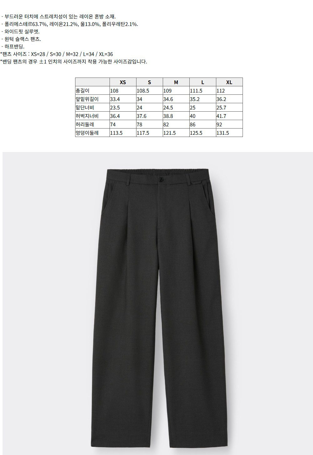 커스텀멜로우 와이드 핏 팬츠 다크 그레이