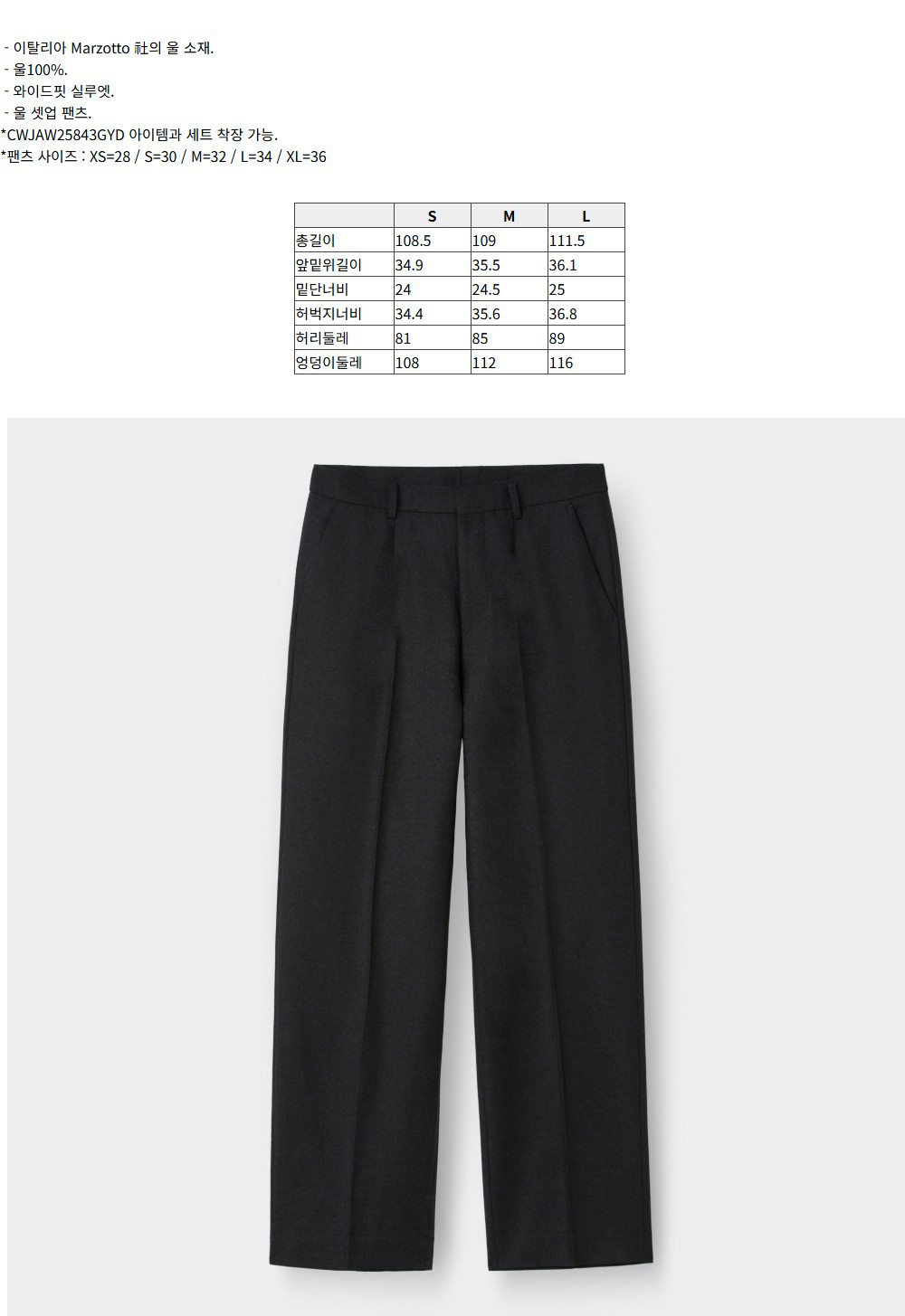 커스텀멜로우 와이드 핏 울 셋업 팬츠 다크 그레이