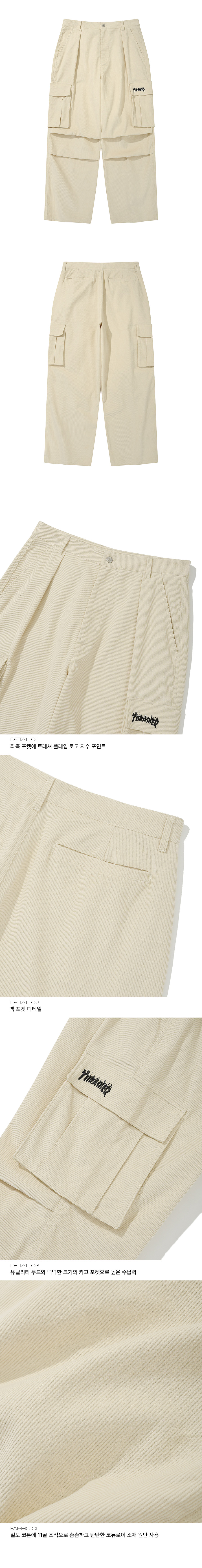 트레셔 플레임 코듀로이 카고팬츠 크림