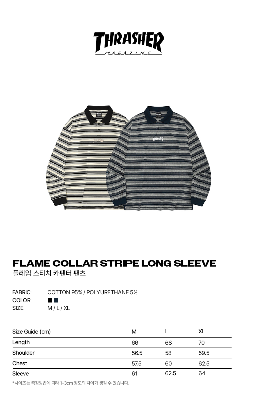 THRASHER Flame Collar Stripe Long Sleeve Black