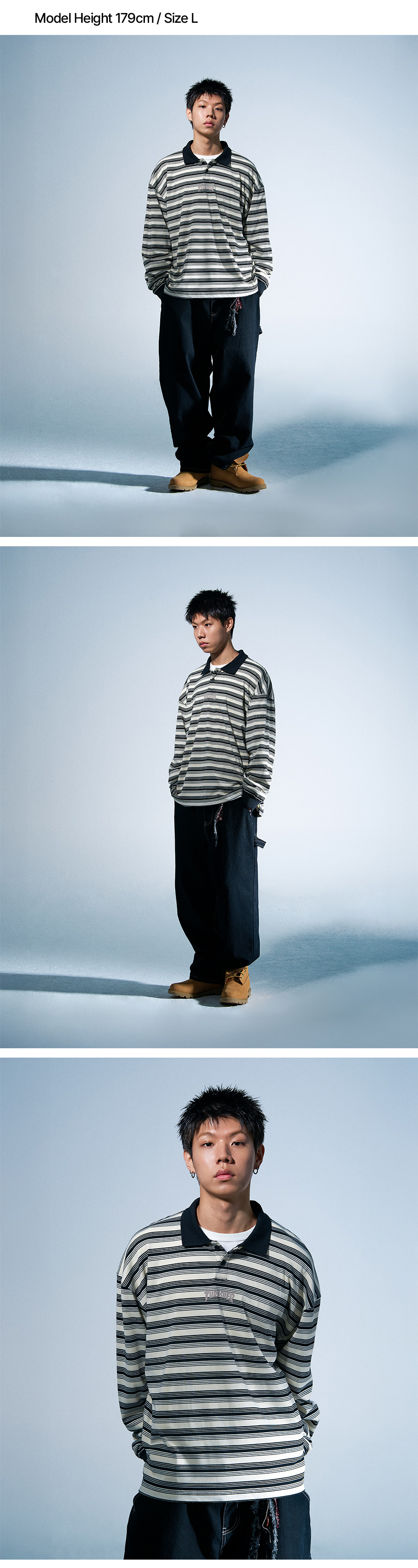 트레셔 카라 스트라이프 롱 슬리브 블랙