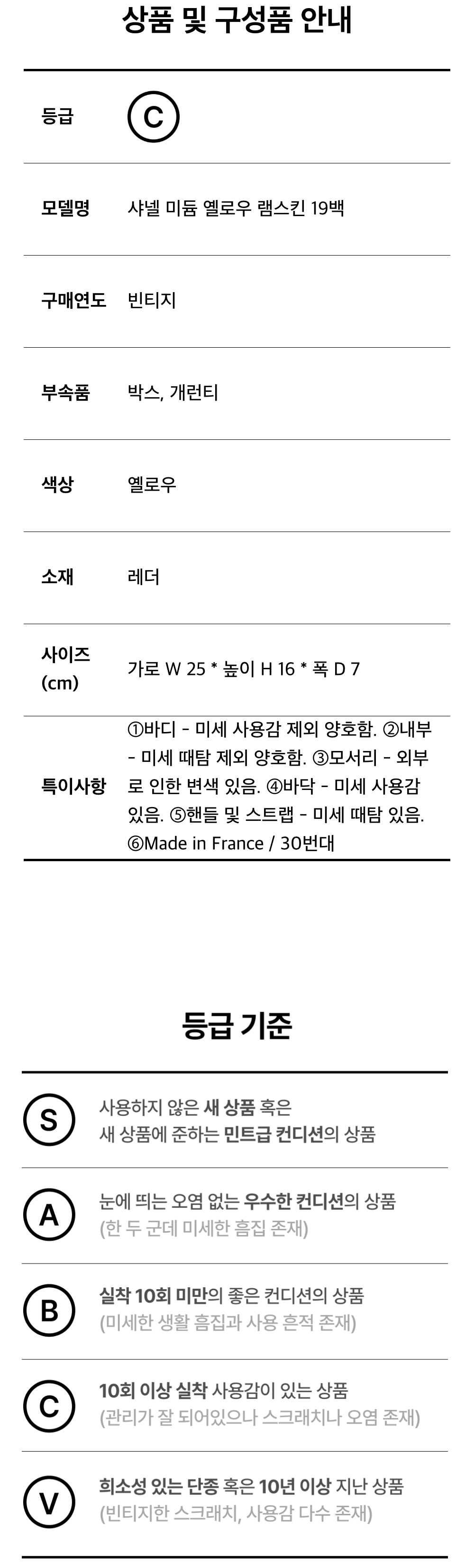 샤넬 미듐 옐로우 램스킨 19 백 D-A37308