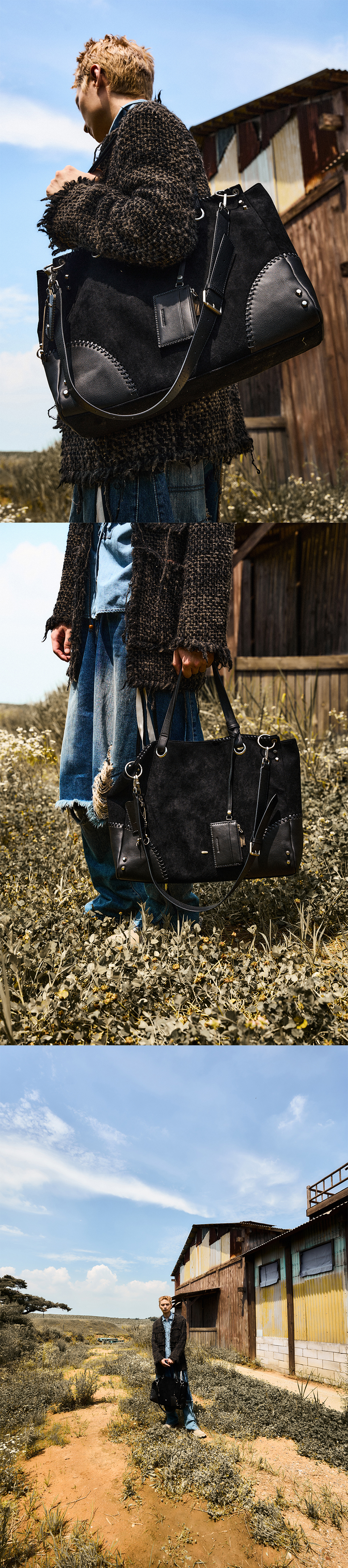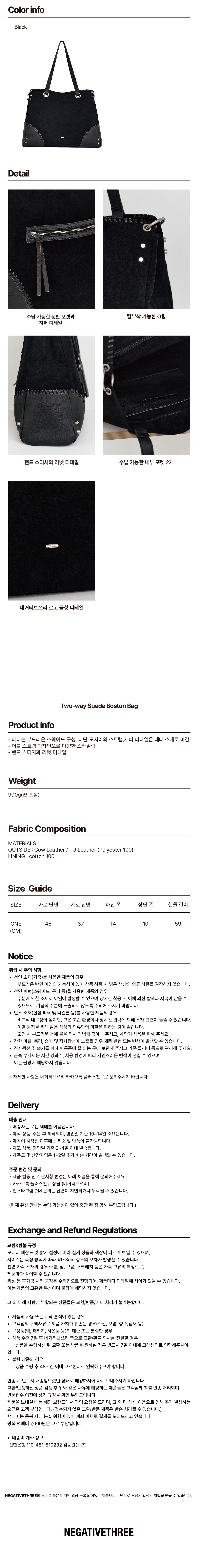 네거티브쓰리 투웨이 스웨이드 보스턴 백 블랙